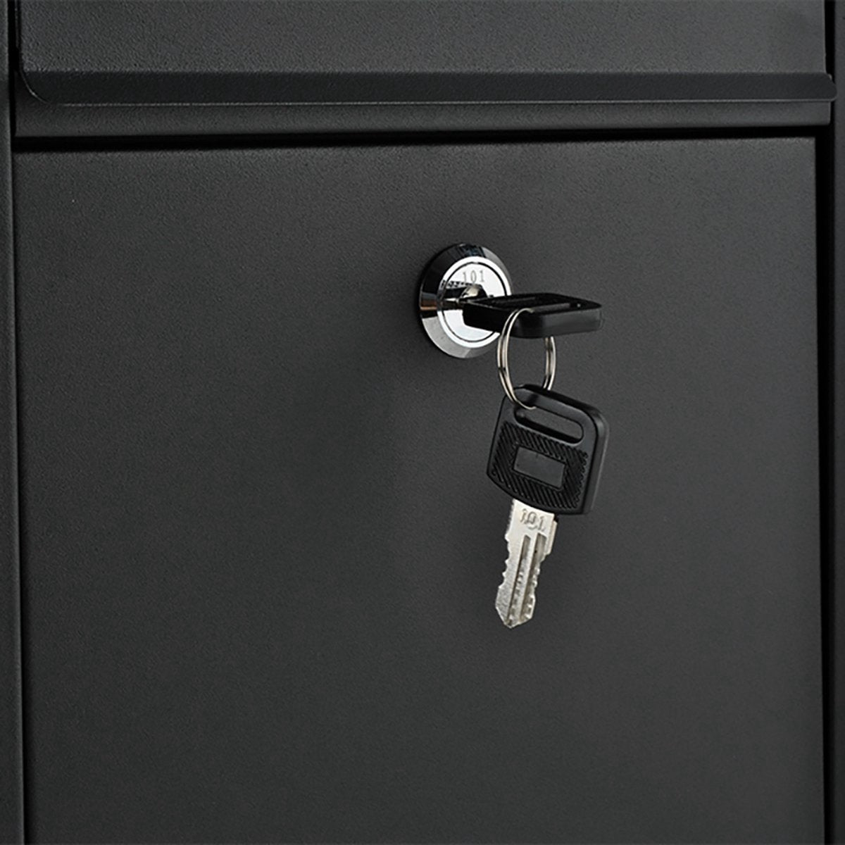De klep opent naar voren en is voorzien van een doorzichtig venster, ideaal om een naamplaatje in te voegen. Dit venster biedt bovendien de mogelijkheid om de inhoud van de brievenbus in één oogopslag te inspecteren. Dankzij het vergrendelingssysteem kunt u de brievenbus snel en veilig openen. De klep wordt vergrendeld door een vergrendelingsbalk die onder een hoek van 90° opent, waardoor u eenvoudig meerdere brieven of documenten in één keer kunt verwijderen. De brievenbus wordt geleverd met twee sleutels, zodat u altijd extra toegang heeft.