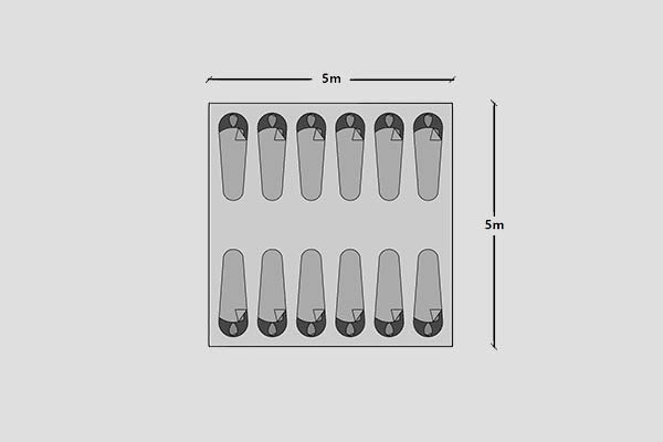 - Total Tent Size: 5.0m (length) x 5.0m (width) x 3.2m (height).
