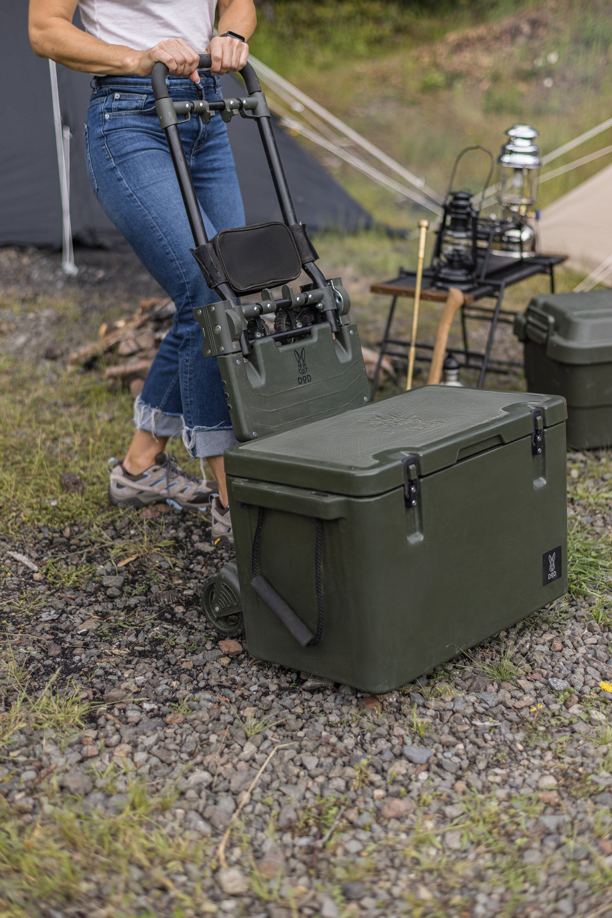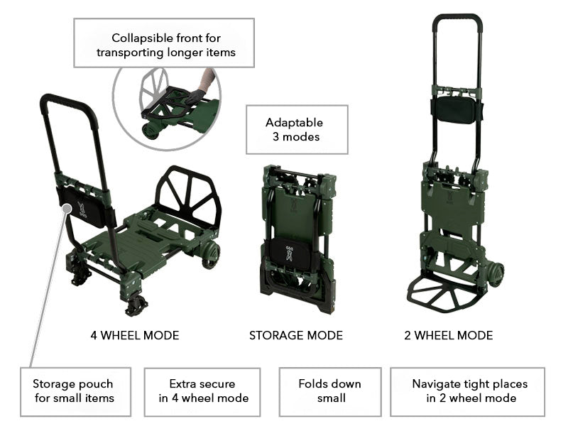 Discover the convenience of our foldable multi-functional carrier, designed to ease the transportation of your gear. This trolley's design ensures that whether you're at a campsite, a parking lot, or navigating tight spaces, you have the ideal mode to carry your items. Its slim folding design ensures easy storage in your car or any compact space. (Available in Olive as Tan has been discontinued)