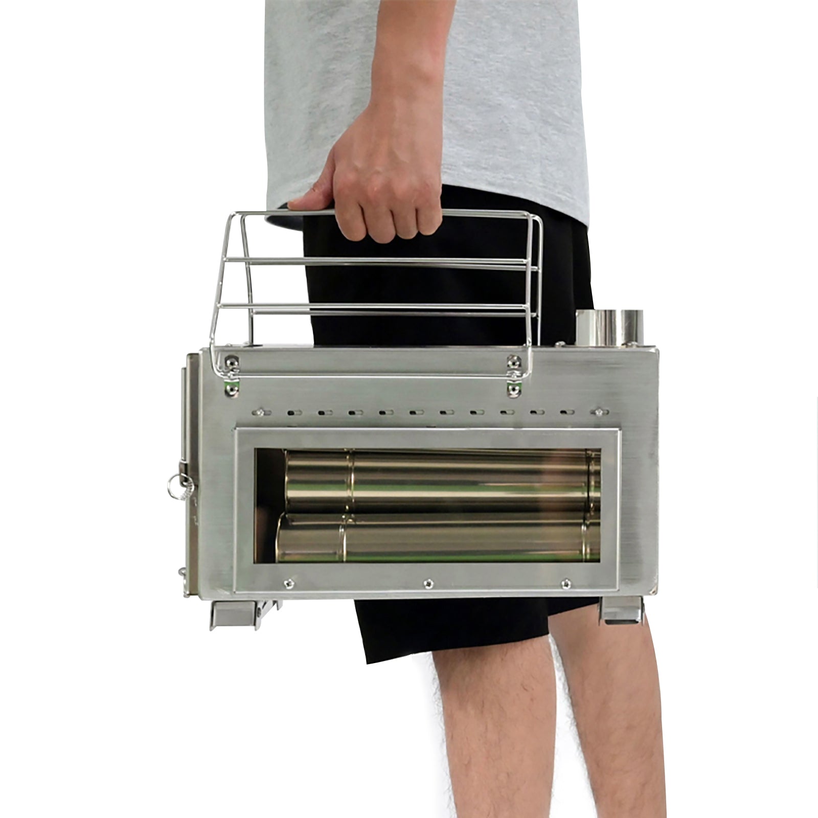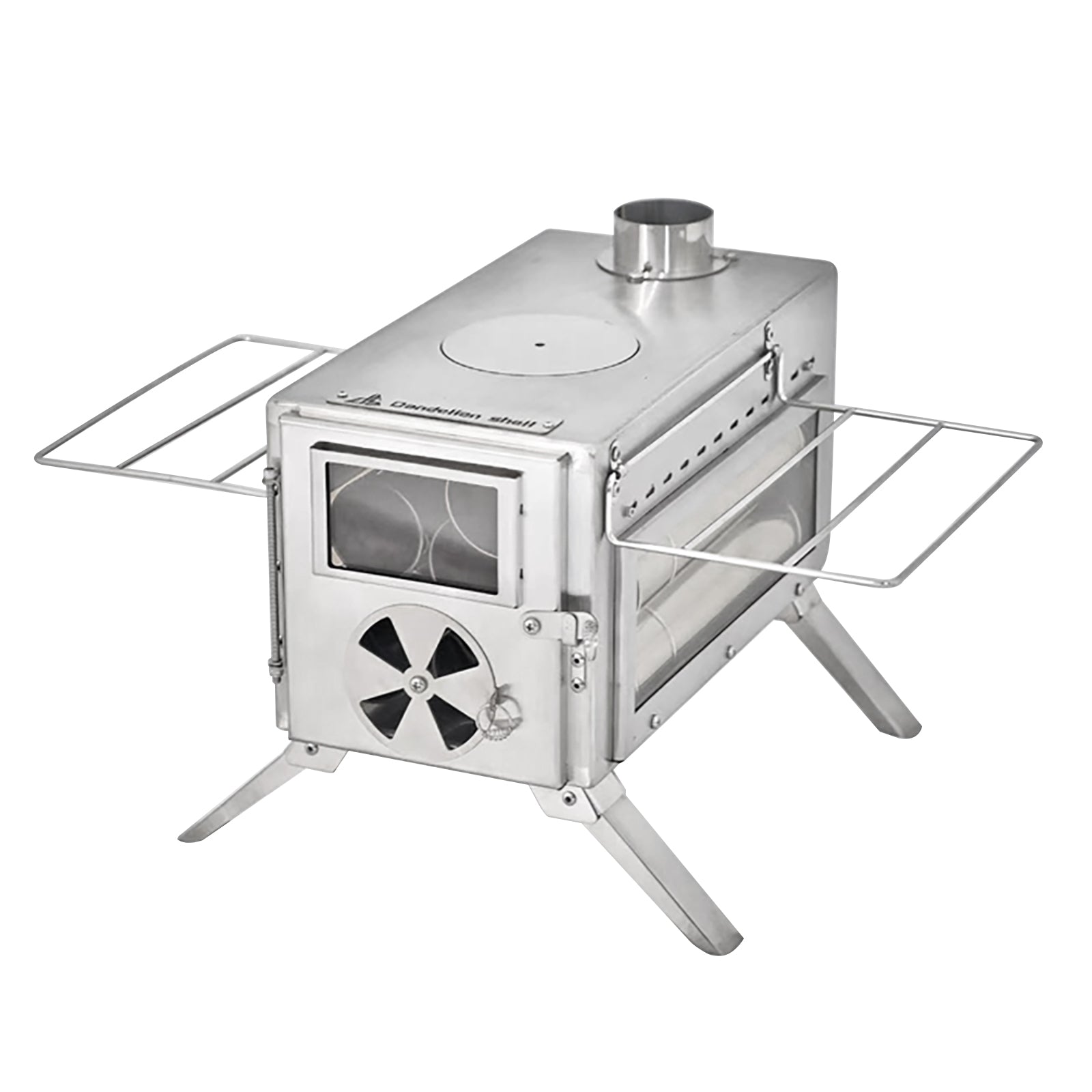 Camping Wood Stove with View Glass & 7 Stainless Steel Insulated Chimneys