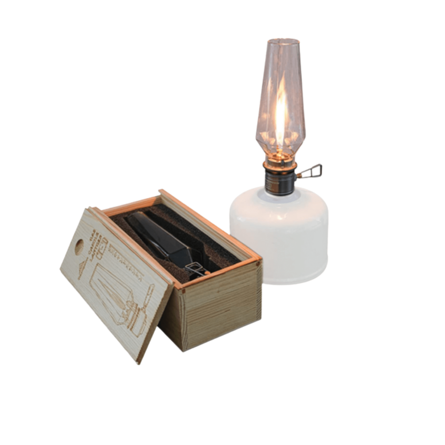 A candle-type lantern that uses gas as fuel and does not use a mantle