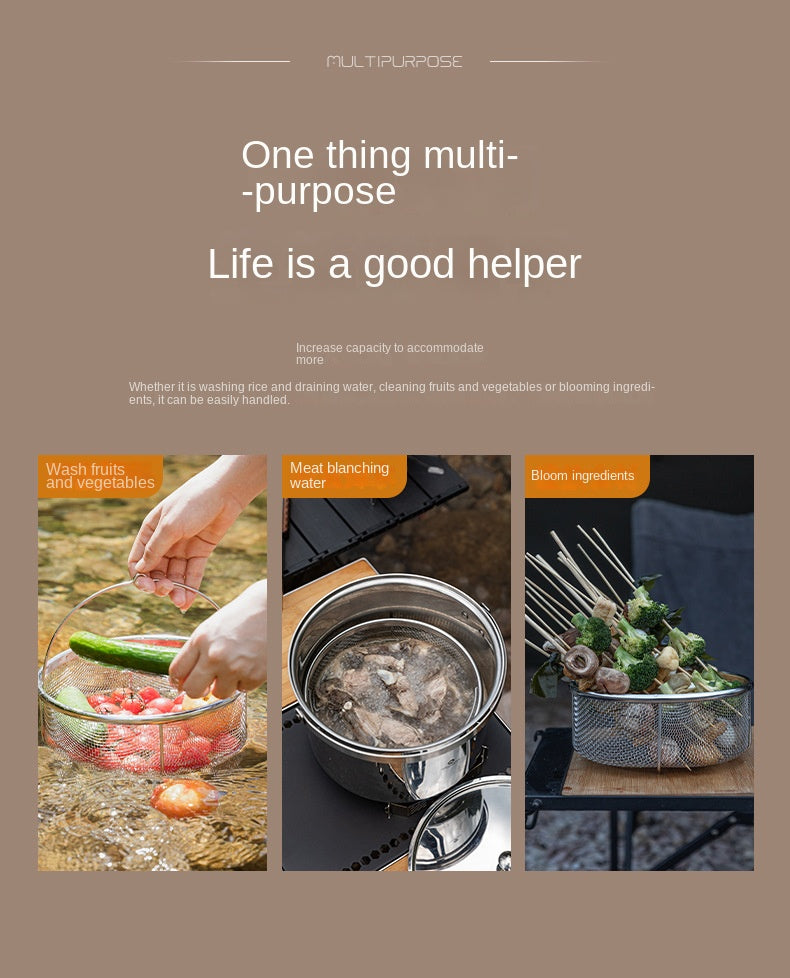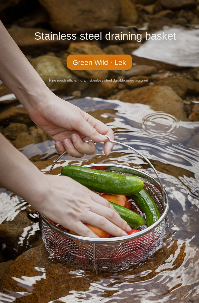 Campingmoon CC-22 Stainless Steel Drain Basket Portable Lightweight Round Mesh Net Strainer For Washing Draining Foods Folding Handle Filter Basket