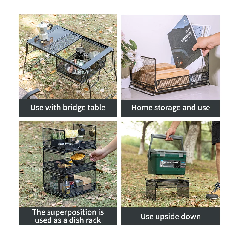 Campingmoon CK-23BK/SS Folding Storage Box Stackable IGT Compatible Tray Storage Basket Tool Storage Grill Table Collapsible Mesh Net