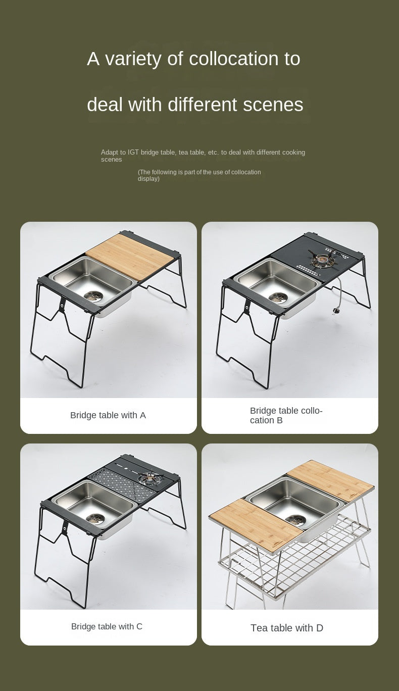 Campingmoon CK-26 IGT One Unit Sink Portable Lightweight Multi-Function Storage Basin Stainless Steel Outdoor Kitchen Sink Add-on Accessories