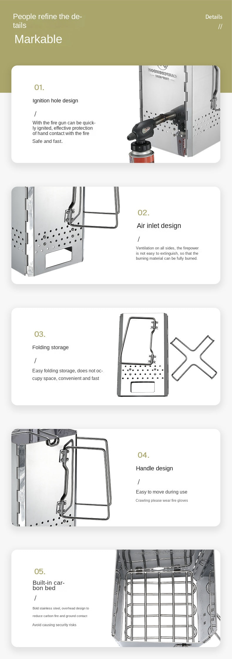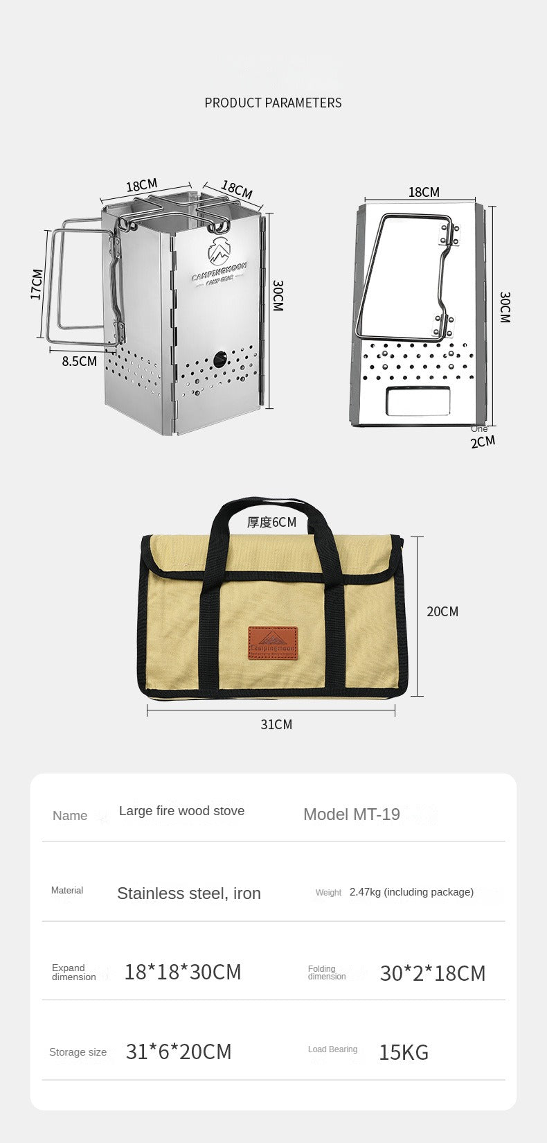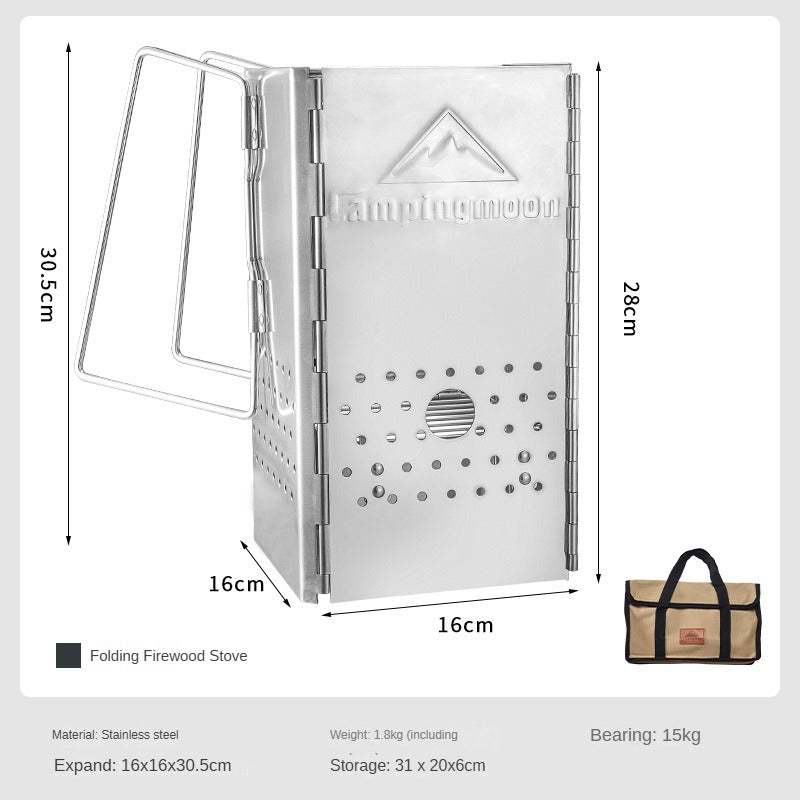 Campingmoon MT-18 Folding Firewood Stove Foldable Mid-Size Charcoal Igniter Fire Starter Burner Four Corner Charcoal Stove Tool Equipment Stainless Steel