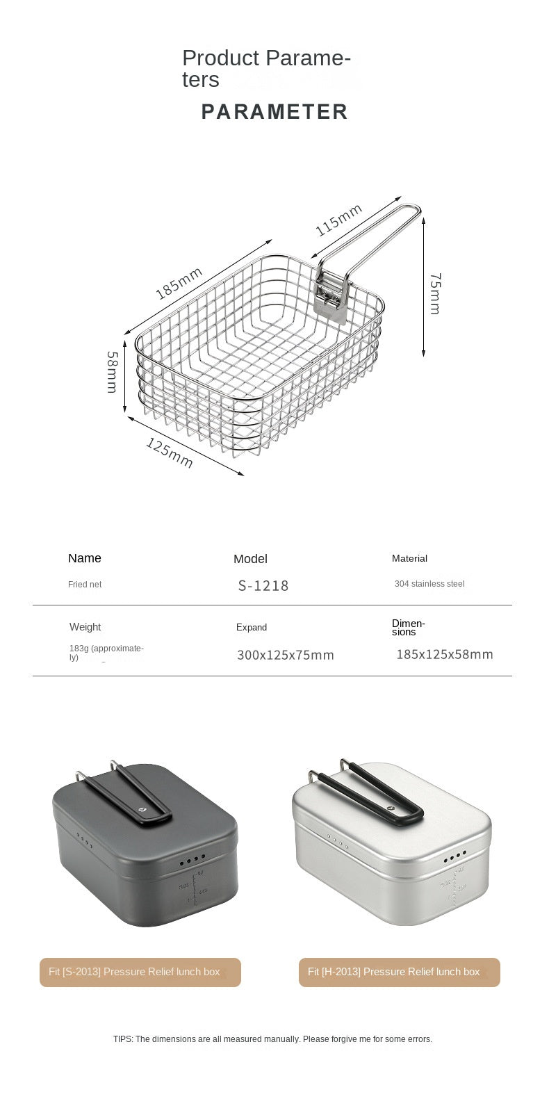 Campingmoon S-1218 Stainless Steel Frying Basket Portable Lightweight Mesh Strainer Deep Fryer For Lunchbox Outdoor Camping Cookware Accessories Add-on