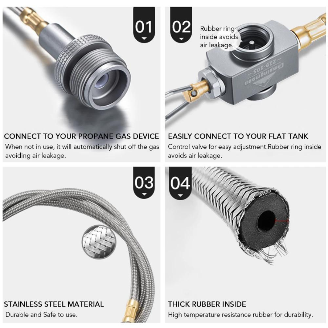 CAMPINGMOON Z29-105 Grill Propane Gas Stove Adapter with Extend Hose