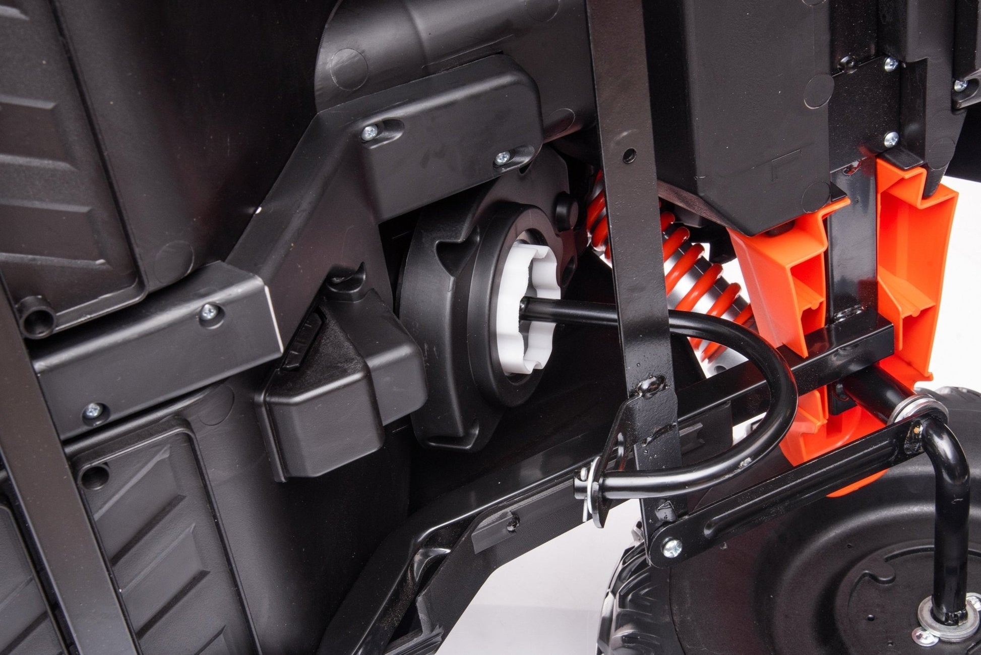 - Smooth rides ensured by 14" EVA Wheels and Rear Spring Suspension