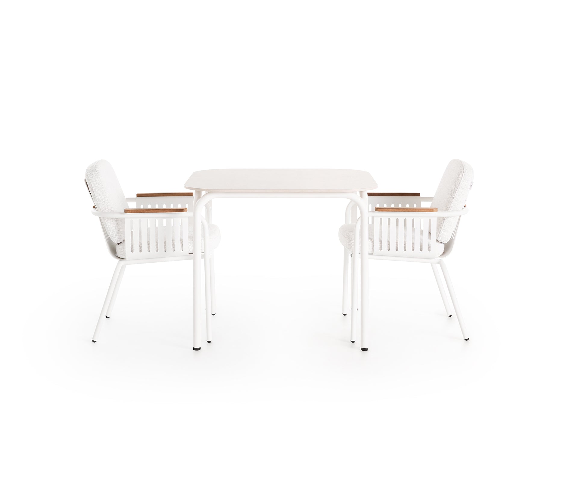 The CAPA dining table 90 is a versatile designer table made up of a tubular aluminum profile structure with high-quality, super-durable powder-coated paint finishes and Dekton® by Cosentino porcelain tops available in smooth or veined varieties. The CAPA dining table 90 combines perfectly with the chair from the same collection, creating comfortable spaces that invite relaxation.