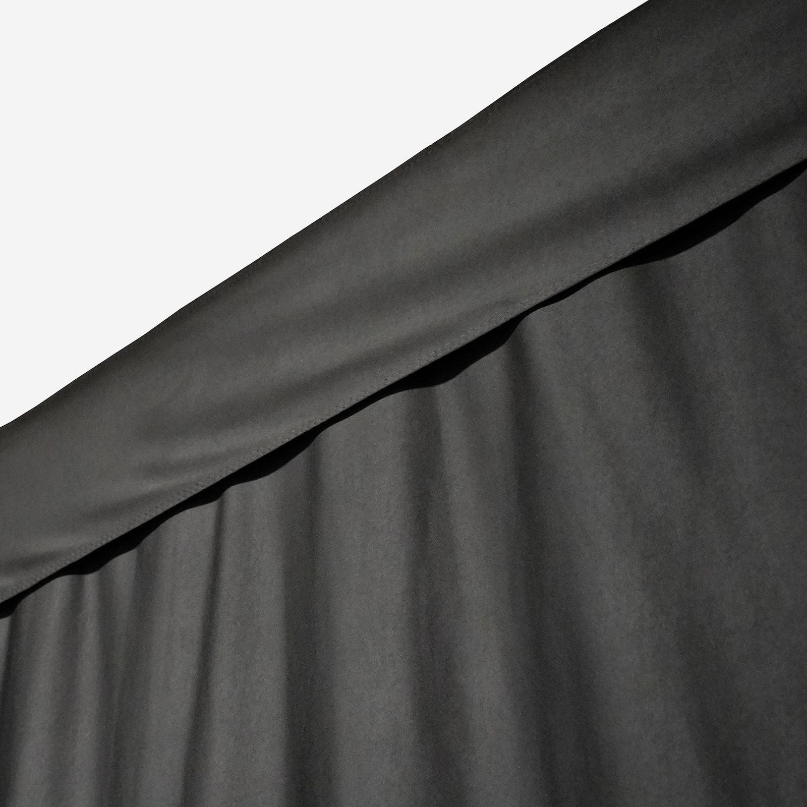 Curtains are made out of polyester and have a brushed, velour finish that gives it a luxurious feel and look. A sewn-in bottom weight helps create heavy curtains for your golf simulator to help with blocking shots. The top edge with grommets has webbed reinforcement to ensure longevity.