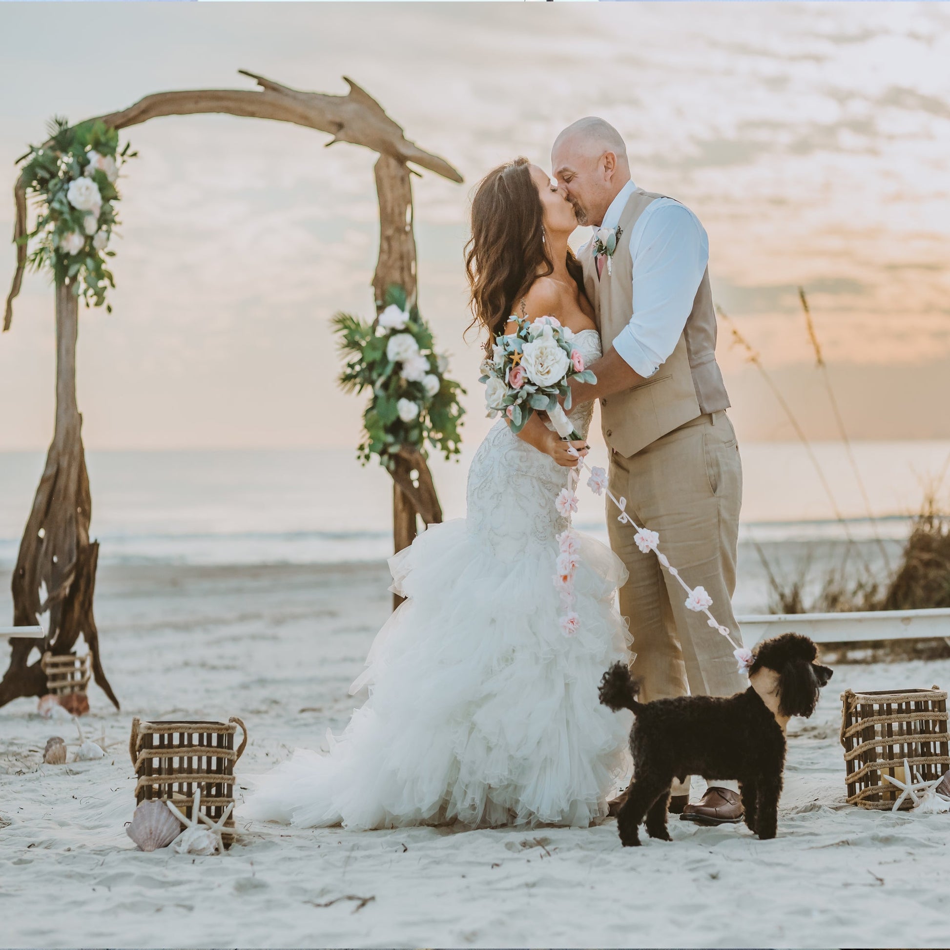 Want to celebrate with your friends and family on the beach, but don't want ANY of the stress of planning? Our team of experienced wedding professionals can help with our most popular full service destination beach wedding package! The decor is even customized to your specific styles and colors! A completely custom wedding, without the stress!