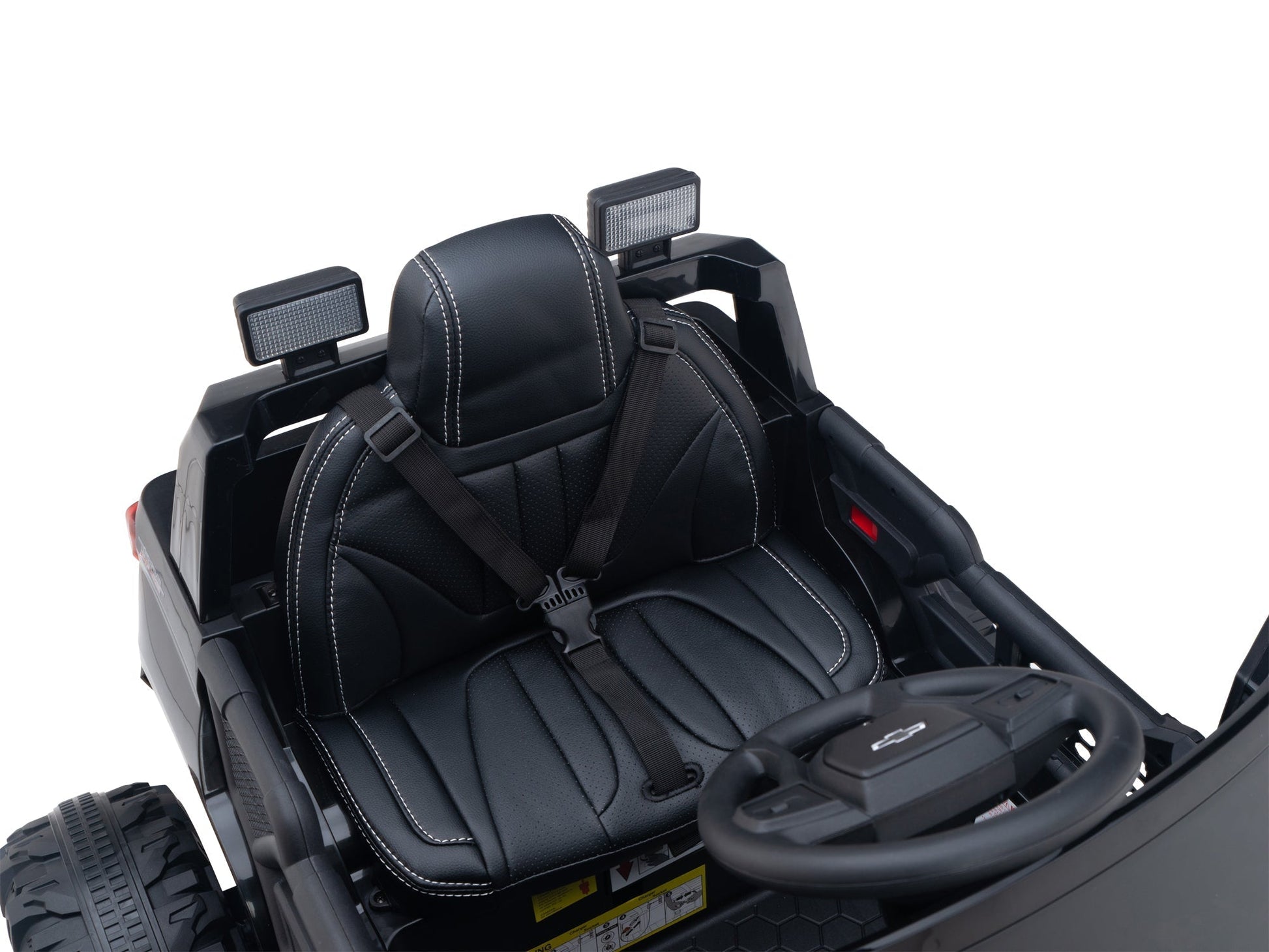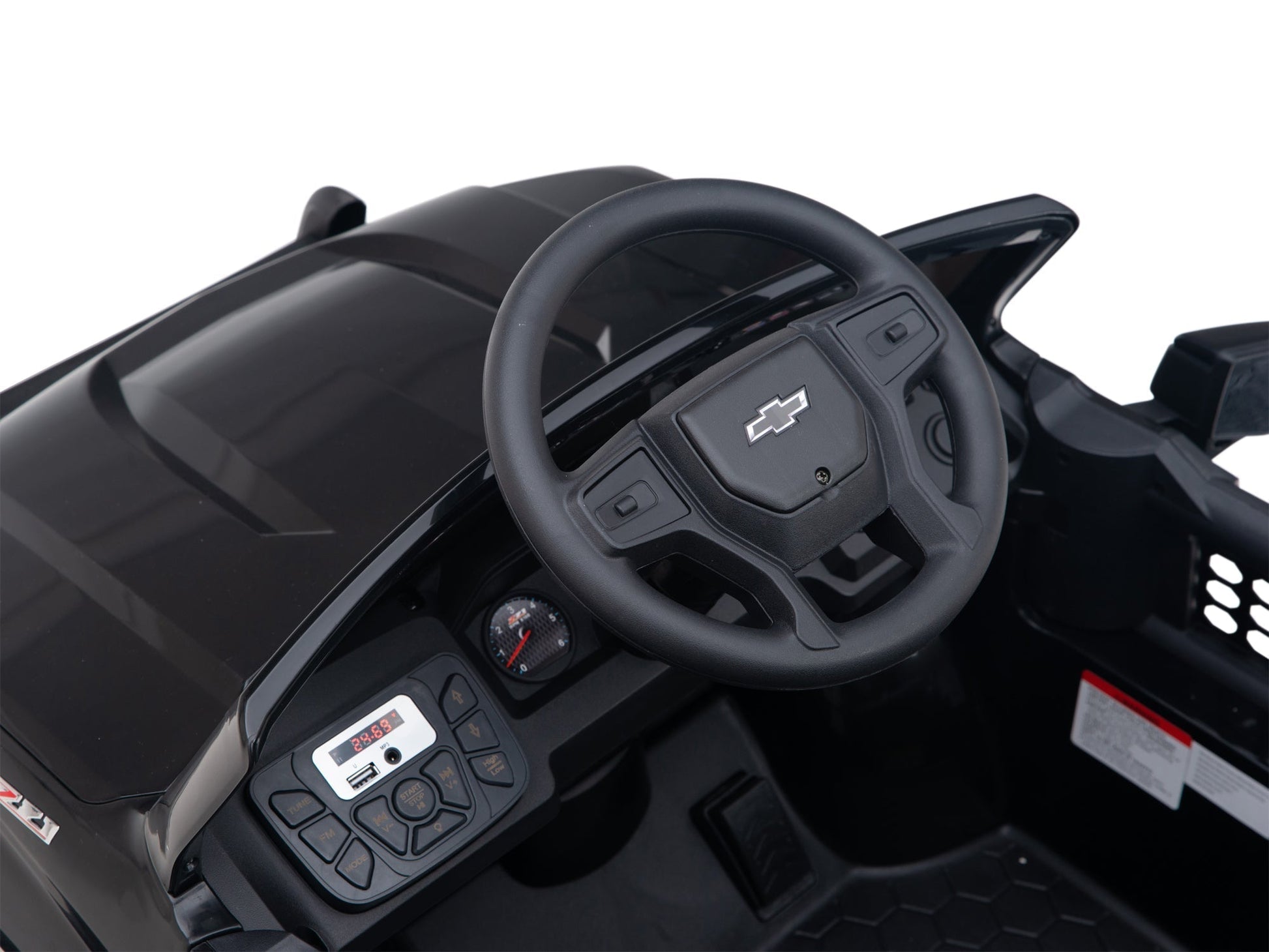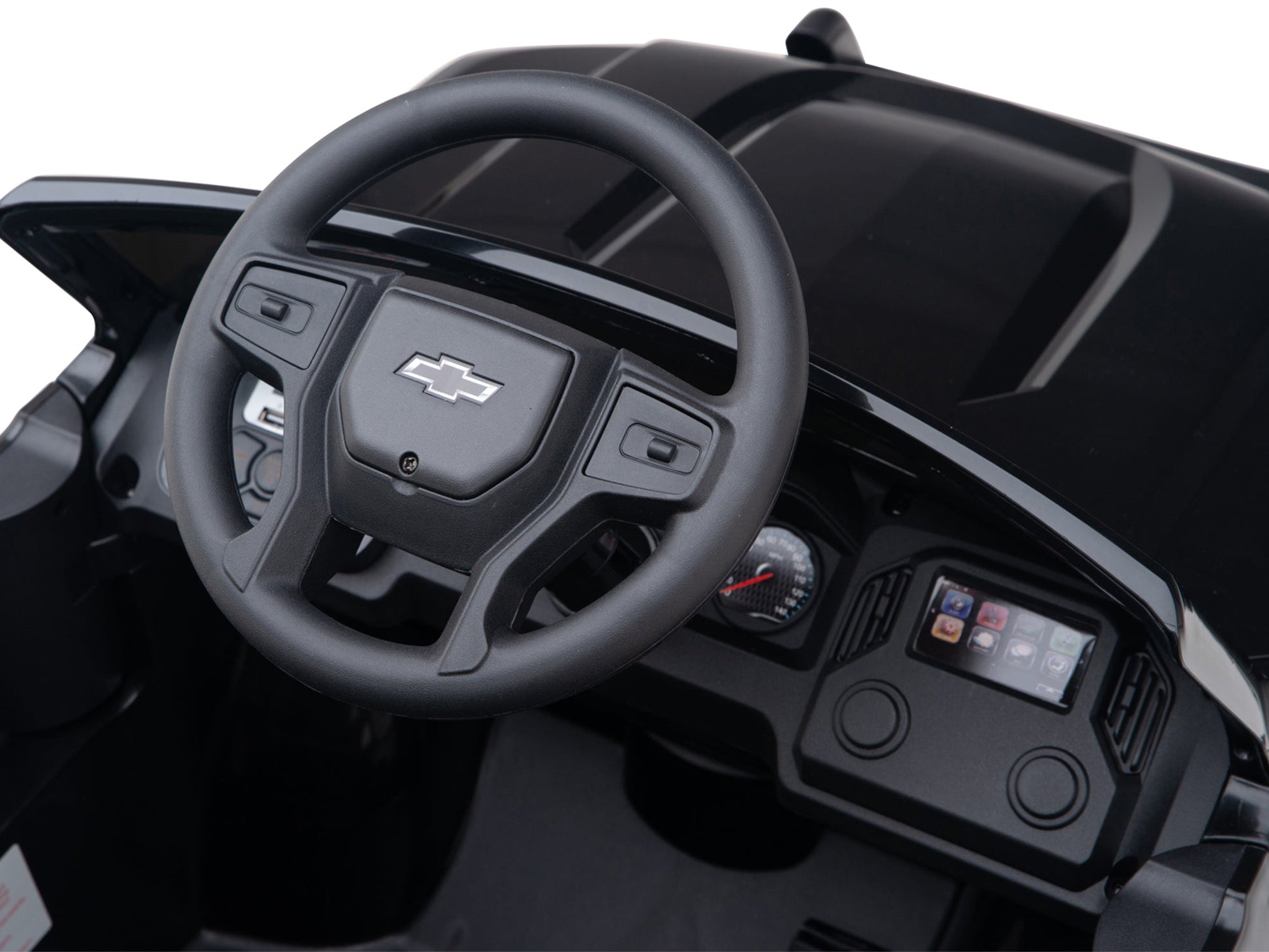 Magic Cars* boasts exceptional features including dual 24 volt motors with 3 speeds, a rechargeable 24V Battery System, and a push button start complete with a car start-up sound. The adjustable seat belt, working stereo radio with volume control and MP3/iPhone input, real working headlights, and full function power steering wheel allow children to drive forward, backwards, left, and right using the pedals, dashboard buttons, and bluetooth. Choose from a white, black, red, or pink Chevy body color to personalize your ride. The best part? Magic Cars* is dedicated to child/parental safety and provides a Bluetooth remote-control unit equipped with wireless command switches. Parents can press the "STOP" button on the remote control to halt the car from driving and control the speed (with 3 options) from the palm of their hand.