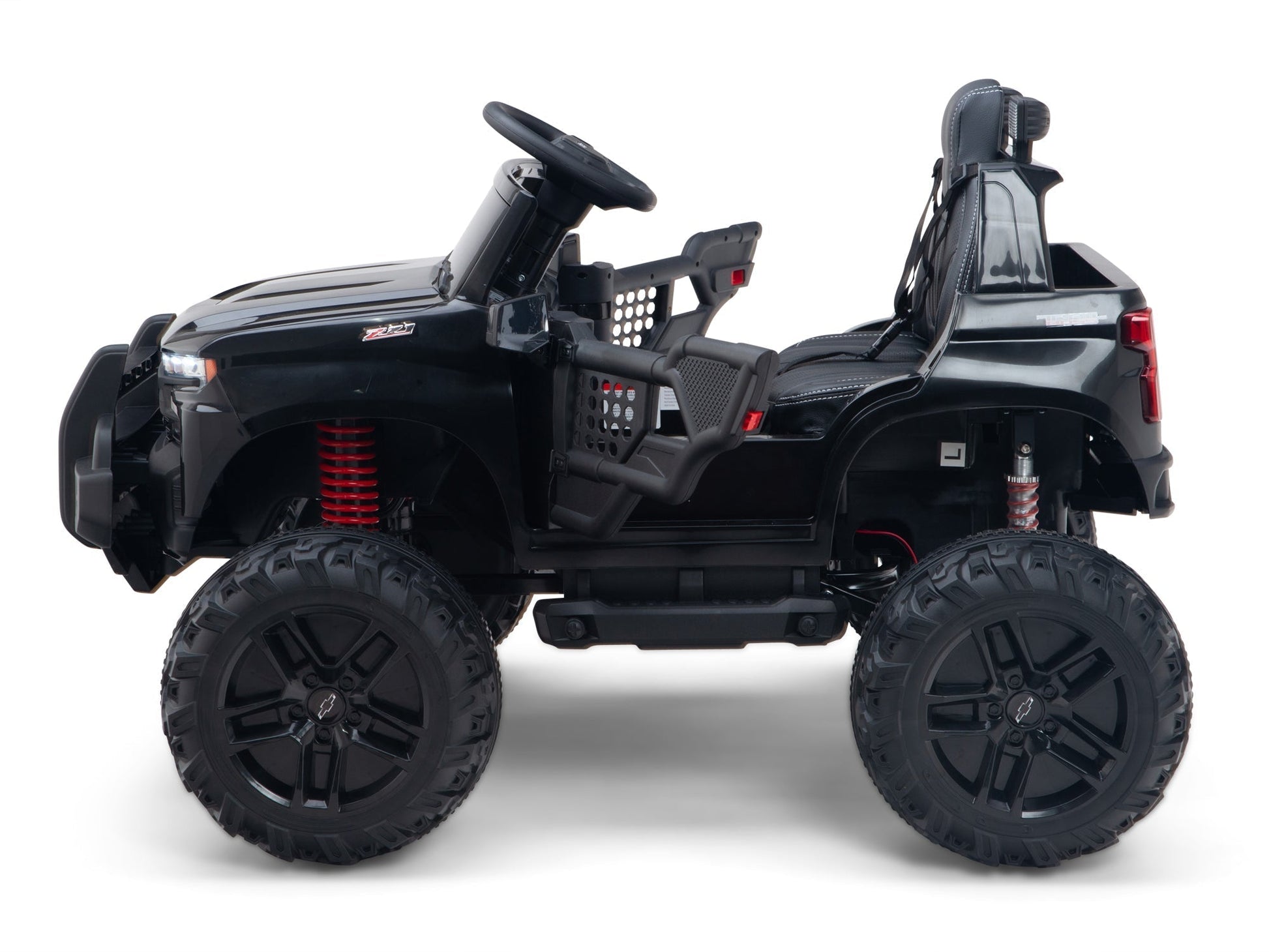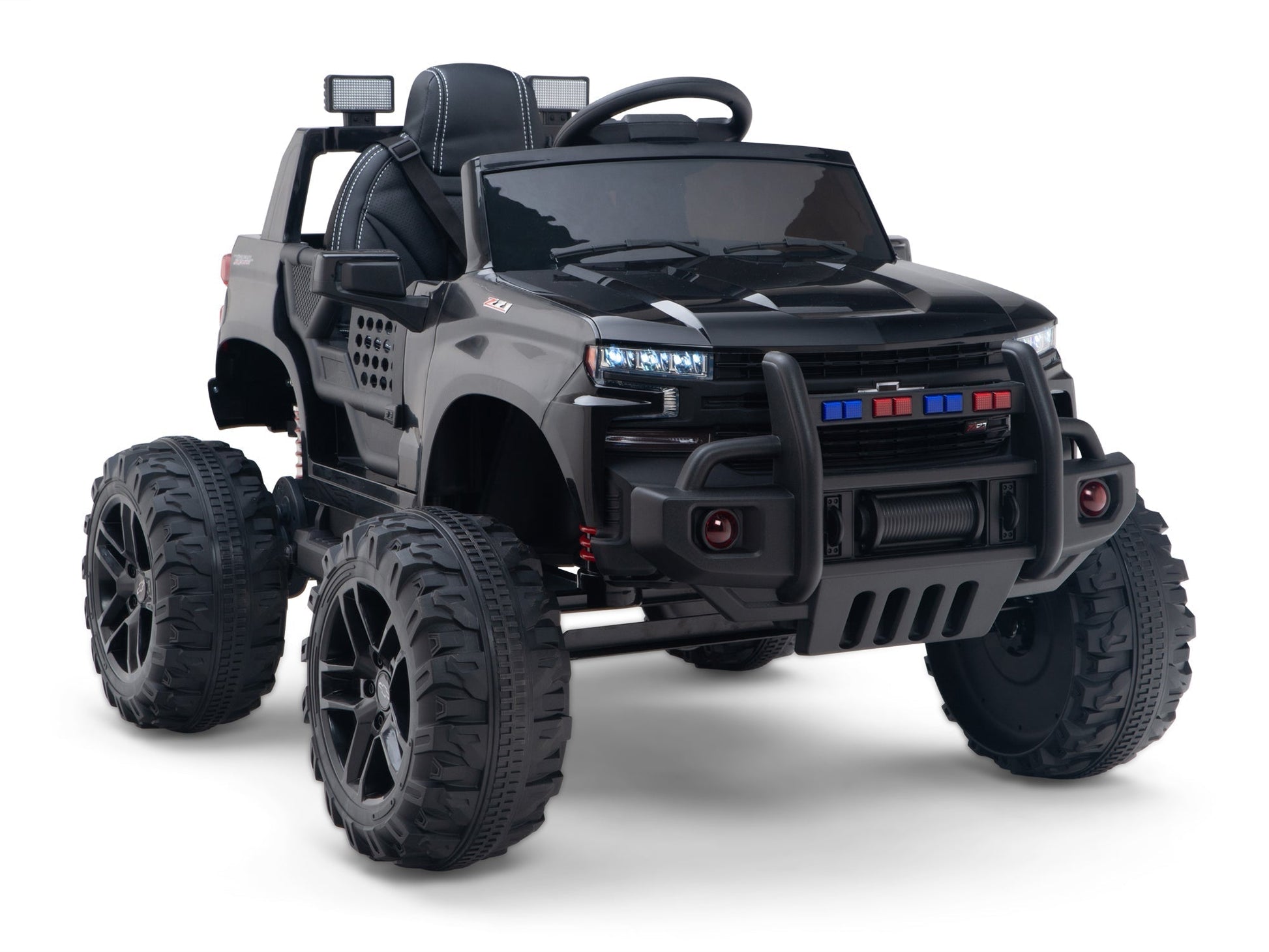 The Magic Cars Chevy Silverado Monster Pickup Truck Ride On Toy Truck for Children offers young children and toddlers the ultimate monster truck experience. This one-seater ride-on vehicle features dual 24 volt motors and can reach speeds up to 5mph. As seen on popular TV channels such as Nickelodeon, Animal Planet, Lifetime, and Hallmark, this miniature version of the beloved Chevy monster truck is designed to help children dream big and experience the thrill of luxury driving at an early age.