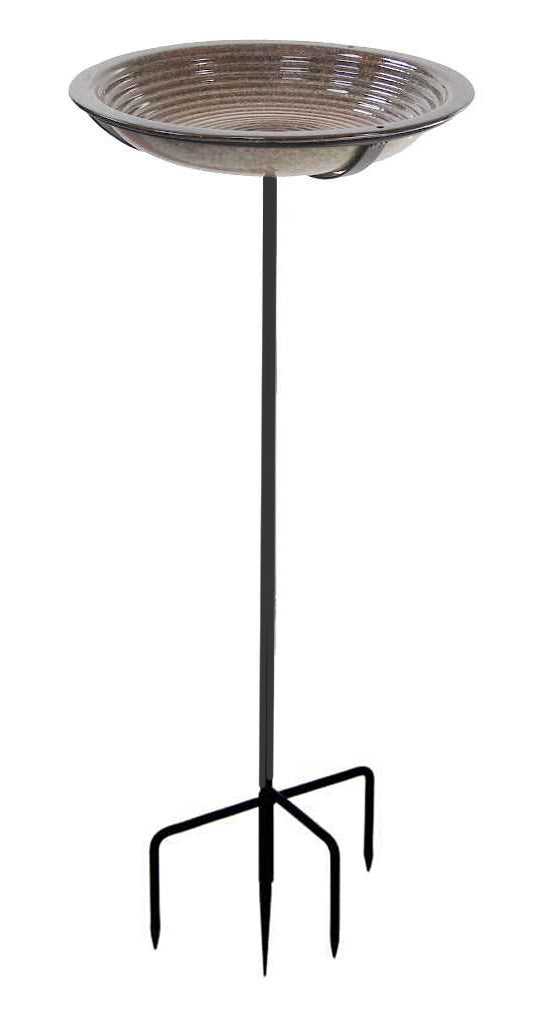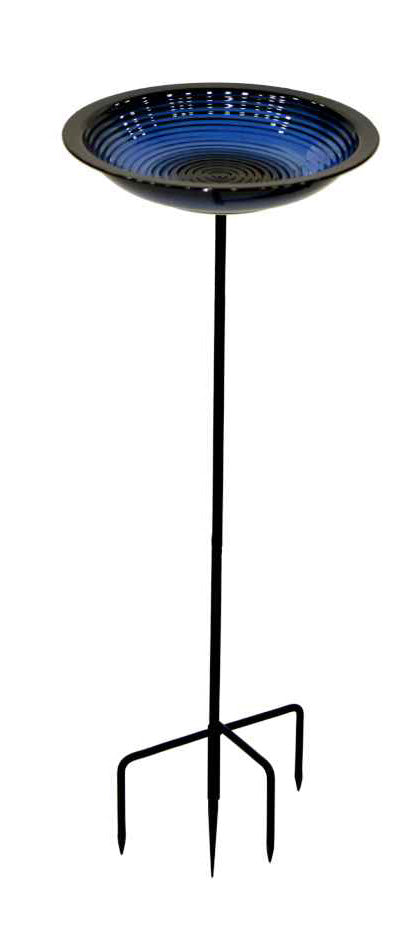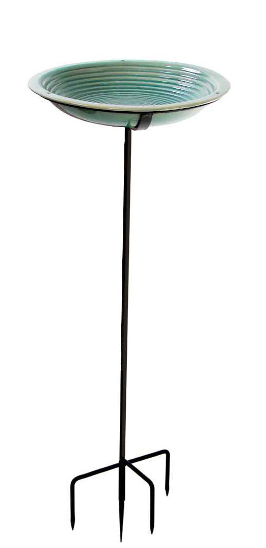 The Alcyon Circles Bird Bath is a made from durable and attractive porcelain stoneware designed to withstand outdoor exposure. The beautiful glaze accentuates the concentric circle design. Mounted on a sturdy powder-coated steel post, it will look stunning in your backyard or garden.