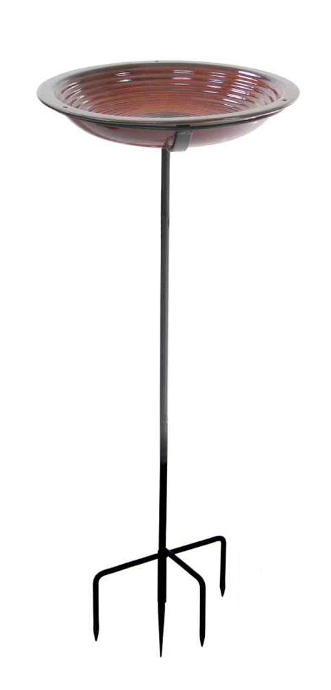 The Alcyon Circles Bird Bath is a made from durable and attractive porcelain stoneware designed to withstand outdoor exposure. The beautiful glaze accentuates the concentric circle design. Mounted on a sturdy powder-coated steel post, it will look stunning in your backyard or garden.