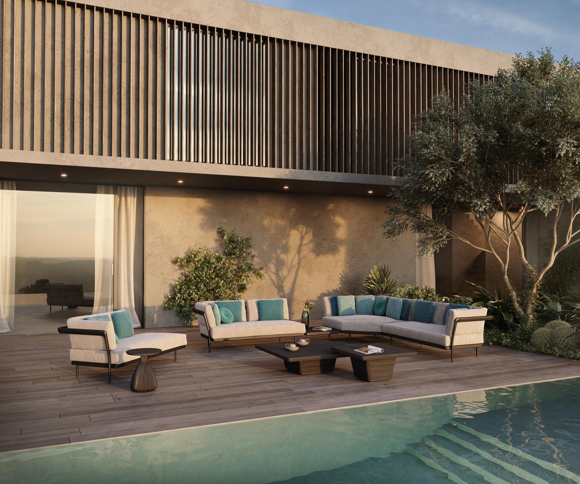 Cobi is a piece by American designer Matthew Townsend, who sought to create a new range of coffee tables that would complement several of Manutti’s already existing furniture collections. A true example of craftmanship, Cobi is beautiful in its standard brushed teak or teak scuro finish.