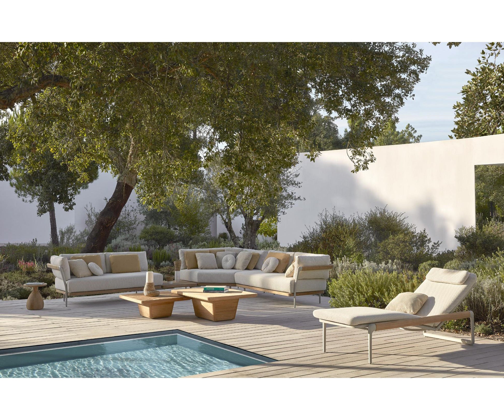 Cobi is a piece by American designer Matthew Townsend, who sought to create a new range of coffee tables that would complement several of Manutti’s already existing furniture collections. A true example of craftmanship, Cobi is beautiful in its standard brushed teak or teak scuro finish.