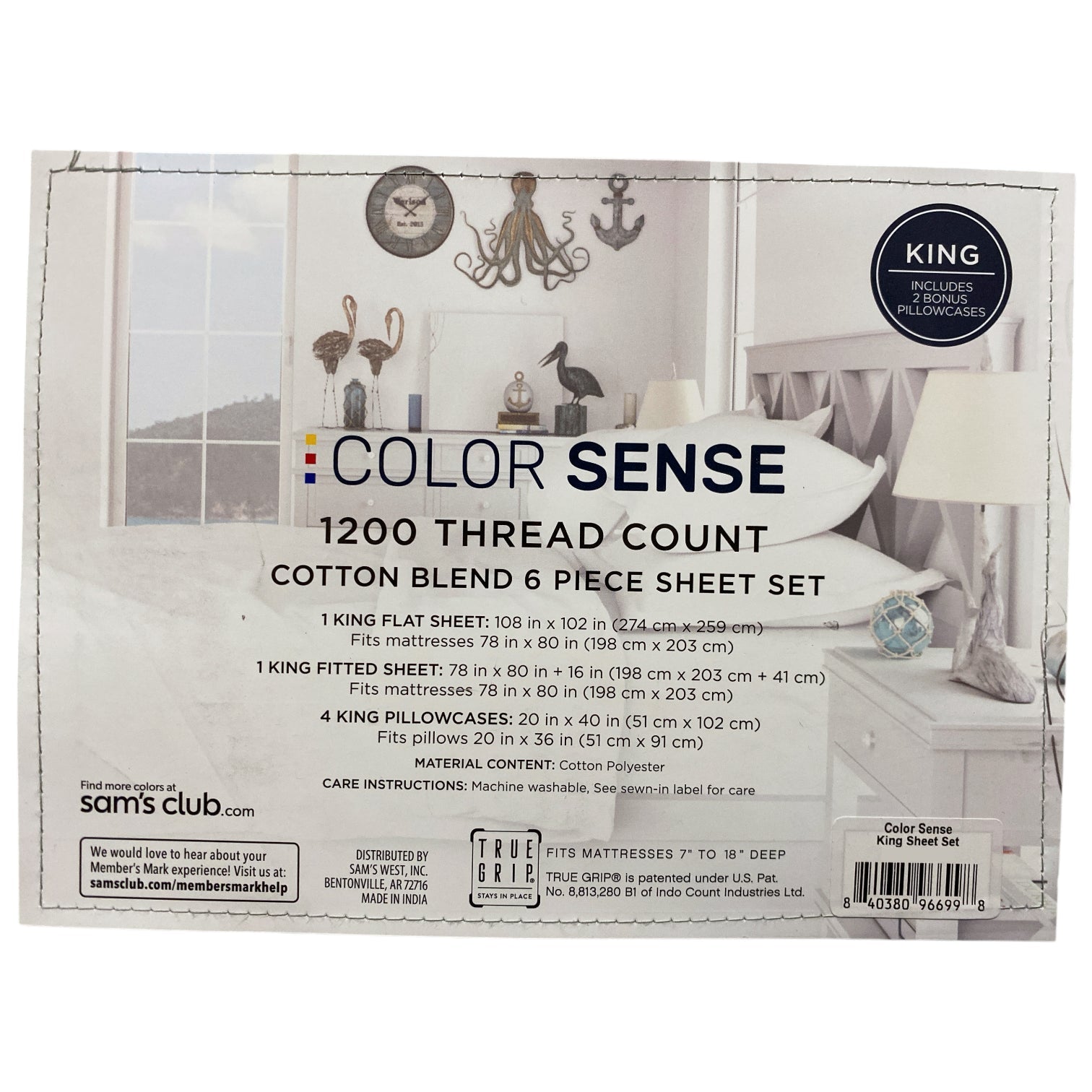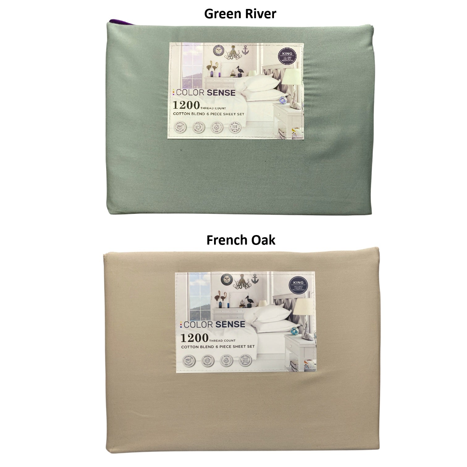 Color Sense 1200 Thread Count Cotton Blend 6-Piece Sheet Set, King
