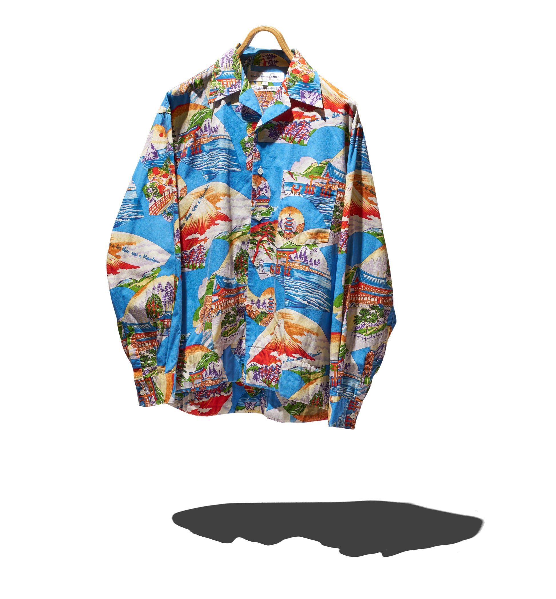 The original fabric, inspired by a Hawaiian shirt, features illustrations of Japan's Mount Fuji, the landscapes of Nara, and the Five-story Pagoda of Kyoto.