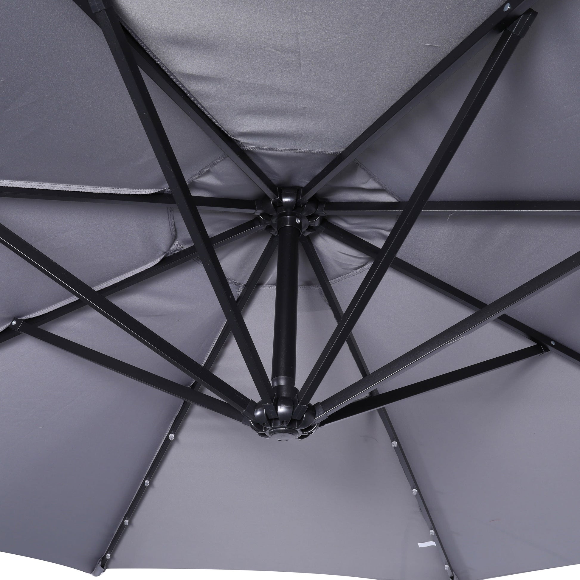 Add versatility and style to your outdoor space with this 10’ round solar commercial grade LED cantilever patio umbrella. With a UV 50+ resistant polyester canopy, your guests can enjoy a space to cool off in the shade when the temperature goes up. A light rain shower will not ruin your day thanks to a weather and water-resistant construction. Illuminate your evening activities with a solar panel on top that powers 32 LED lights across eight ribs. No longer will you have to retreat indoors as the sun retreats. And with up to 6 hours of illumination time, this outdoor solar umbrella is a great addition to any bar, bistro, or hangout spot offering a welcoming, casual experience. A sturdy 1.65” diameter steel tube lower pole, 2” diameter steel tube upper pole and built-in cross base make for a sturdy addition to your space and an easy lift and tilt function for easy deployment. Assembly is quick and easy, typically taking under 10 minutes, and maintenance is just as easy with a damp cloth. Enjoy your space your way on your time. This cantilever umbrella pairs beautifully with our patio table for a complete look.