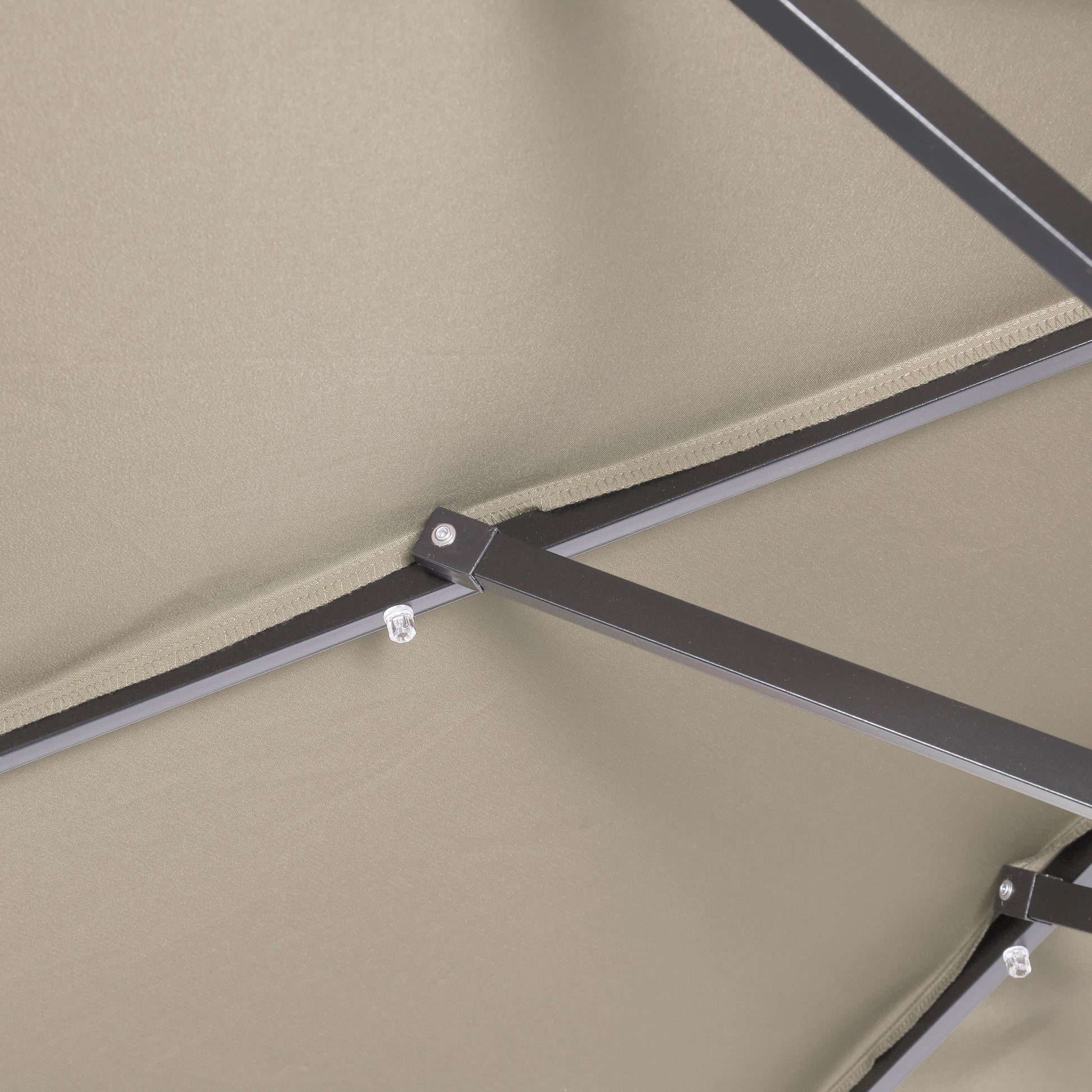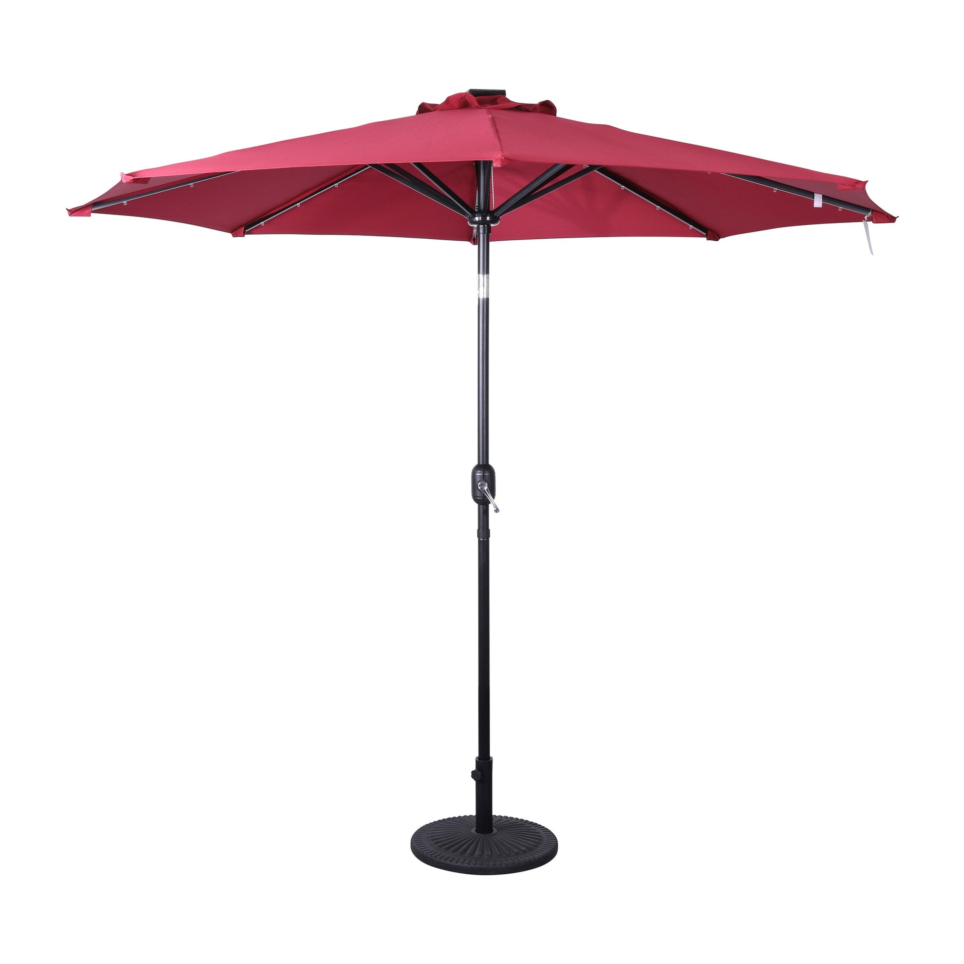 Day or night, every moment can be made more special with this 9' round commercial grade solar LED patio umbrella. Enjoy some shade at your home or business and keep cool even on the warmest days with the UV 50+ protective, weather and water-resistant canopy. When the sun goes down, this perfect patio addition really gets to shine. A solar panel on top powers 32 LED lights across eight ribs that instantly elevate your commercial outdoor dining and lounge areas as well as your home deck or patio allowing patrons, friends, or family to relish your outdoor spaces no matter the time. With up to 6 hours of illumination this outdoor solar umbrella is a great addition to any bar, bistro, or hangout spot offering a welcoming, casual experience. A sturdy 1.5” diameter steel tube pole with a crank handle for easy deployment and push button tilt function provides shade where you need it to give your guests a relaxed, cozy setting. Assembly is quick and easy, typically taking under 10 minutes, and maintenance is just as easy with a damp cloth. This umbrella pairs beautifully with our concrete umbrella base or patio table with umbrella hole for the complete look.