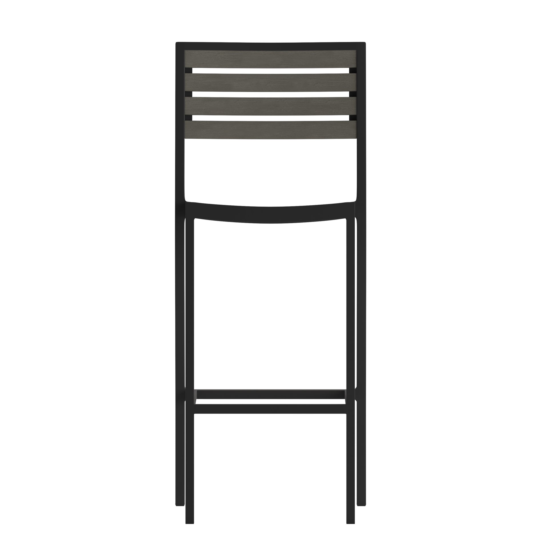 Lark Commercial Grade Bar Height Stool, All-Weather Outdoor Bar Stool with Faux Wood Poly Resin Slats and Aluminum Frame