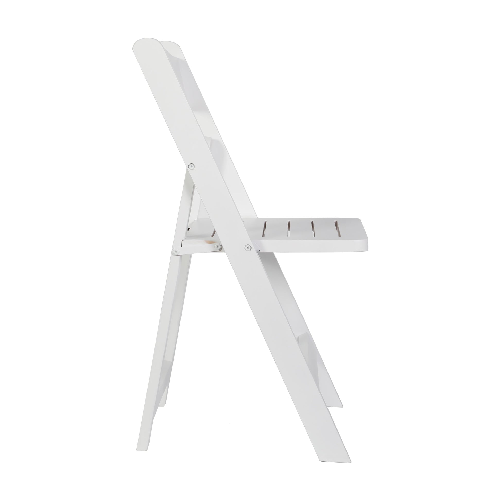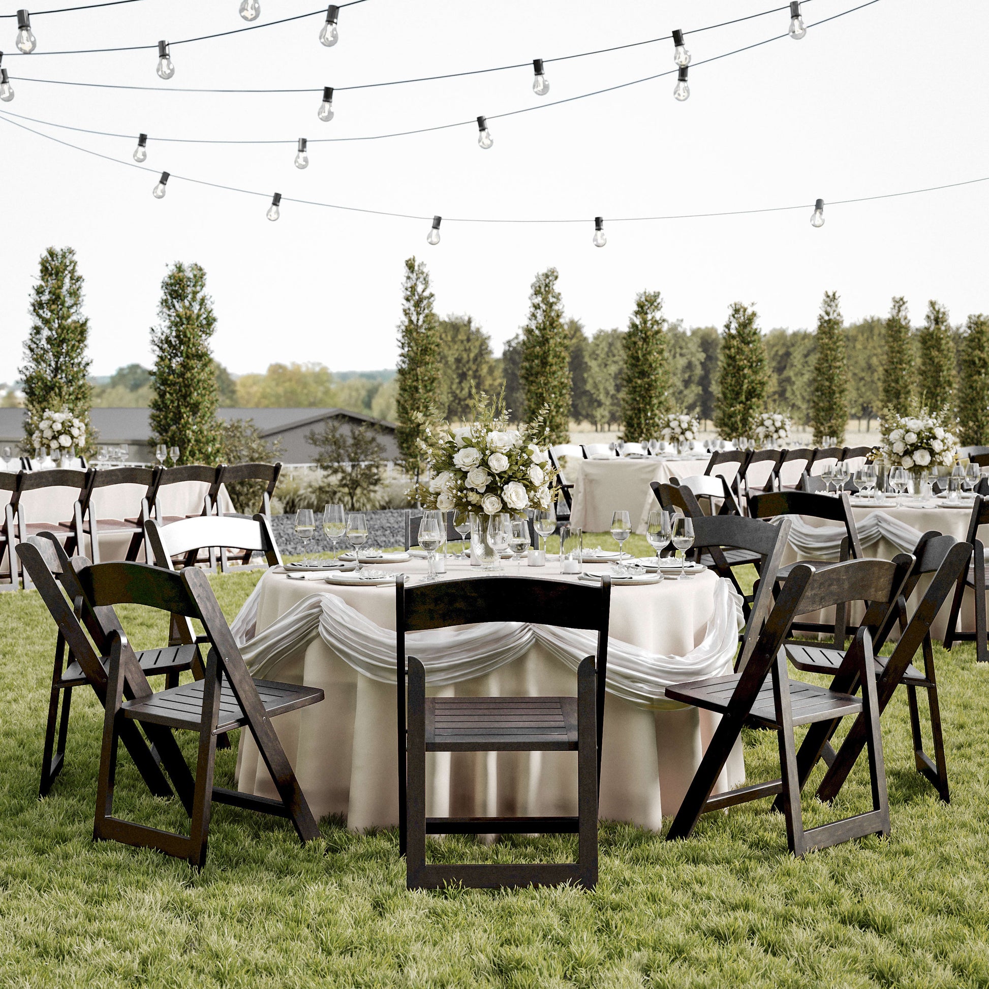 Dazzle your friends and family during your next dinner party or deliver a warm, inviting presentation to your business with this wood folding chair that combines sophistication with functionality, enhancing any room or event space. The perfect fit for your kitchen or dining room at home, this chair is also rated for commercial use, so you can rely on its versatile design to bring style and comfort to your restaurant, bar, bistro, lounge, coffee shop, café, deli, or event space. Crafted from solid beechwood with a robust mortise and tenon construction, this chair is built for durability and stability. The curved back provides comfort for extended periods to keep your guests relaxed and engaged during weddings, conferences, or luncheons. An easily foldable design allows for simple, space-saving storage and welcome portability to move and transport your chair hassle-free. This chair boasts a static weight capacity of 300 lbs., accommodating a variety of users while maintaining structural integrity. Plus, fixed floor glides are designed to protect your hard flooring surfaces from damage, enabling you to freely and confidently move your chair around your space. No assembly is required, saving you from the need to waste time and energy on a tedious setup process. Clean up is a breeze – Simply wipe with a damp cloth to keep it looking pristine. Whether you're furnishing a cozy home dining area or an elegant commercial venue, this folding chair is an excellent choice for style and convenience.
