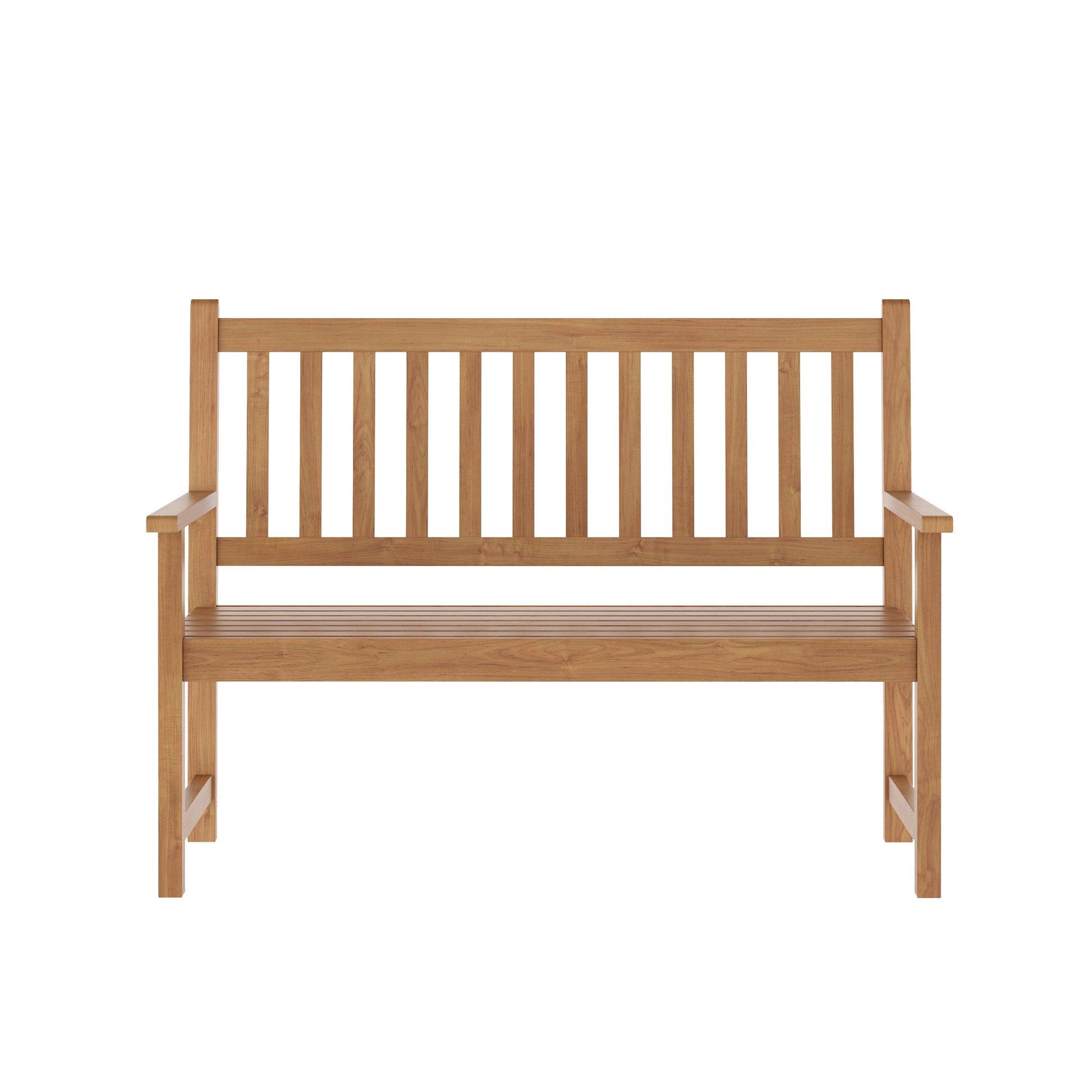 Adele Commercial Grade Indoor/Outdoor Patio Acacia Wood Bench, 2-Person Slatted Seat Loveseat for Park, Garden, Yard, Porch