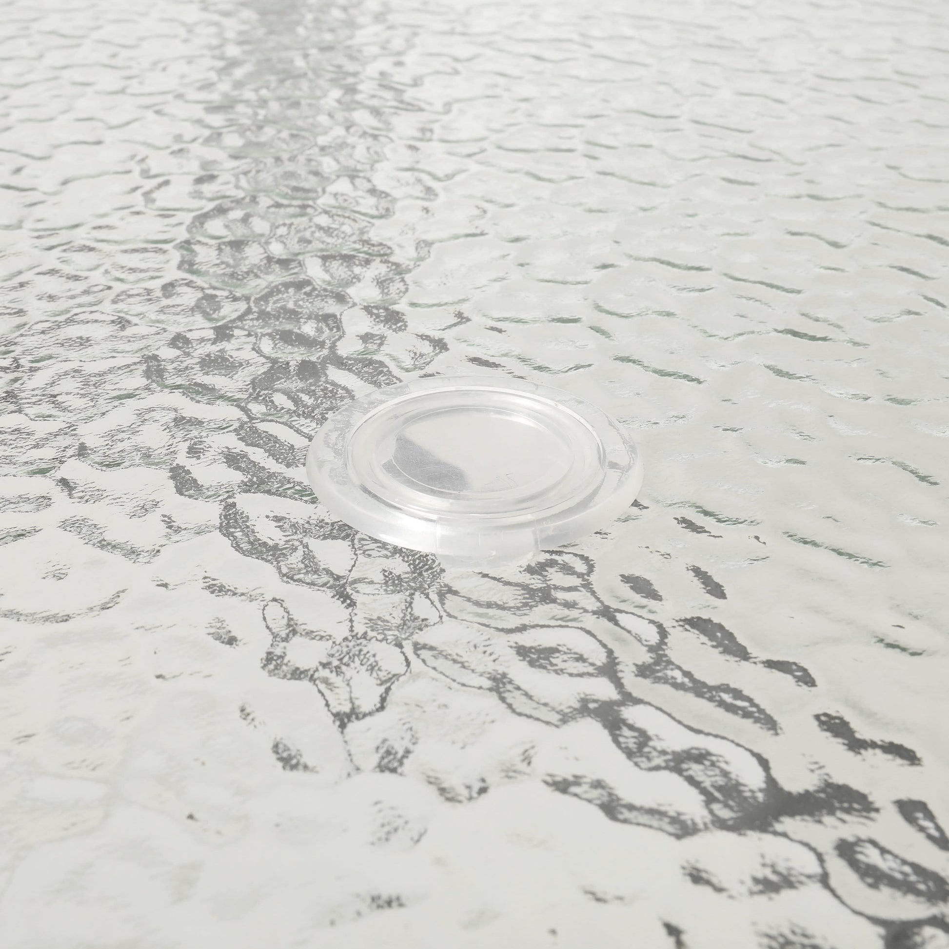 Wow your guests every time you host with this outdoor patio dining set that includes a table and six chairs. This commercial grade set is the perfect way to serve succulent meals and provide good times at your bar, restaurant, bistro, or lounge. The table features a 5 mm tempered glass top with a water wave pattern for sensational style, plus an umbrella hole so you can keep your guests cool and covered. The tabletop is heat-resistant up to 700 degrees so you can confidently serve all your favorite dishes. When dinner is served, give your guests comfortable seating with these six lightweight, stackable dining chairs. The chairs boast an ergonomic seat structure with a curved slat design that allows water to pass through for a reliable addition to your outdoor space. The table and all chairs feature durable powder-coated steel frames for weather and rust-resistance as well as fixed floor glides to prevent damage to floors. Thanks to their heavy duty construction, the table holds up to 130 lbs. static weight while each chair holds up to 350 lbs. static weight. The table assembles quickly and easily in under ten minutes while the chairs require no assembly. Clean-up is just as easy as setup, as this set can be wiped clean with a damp cloth. Maximize your outdoor space with a welcoming environment for your guests with this outdoor patio dining set.