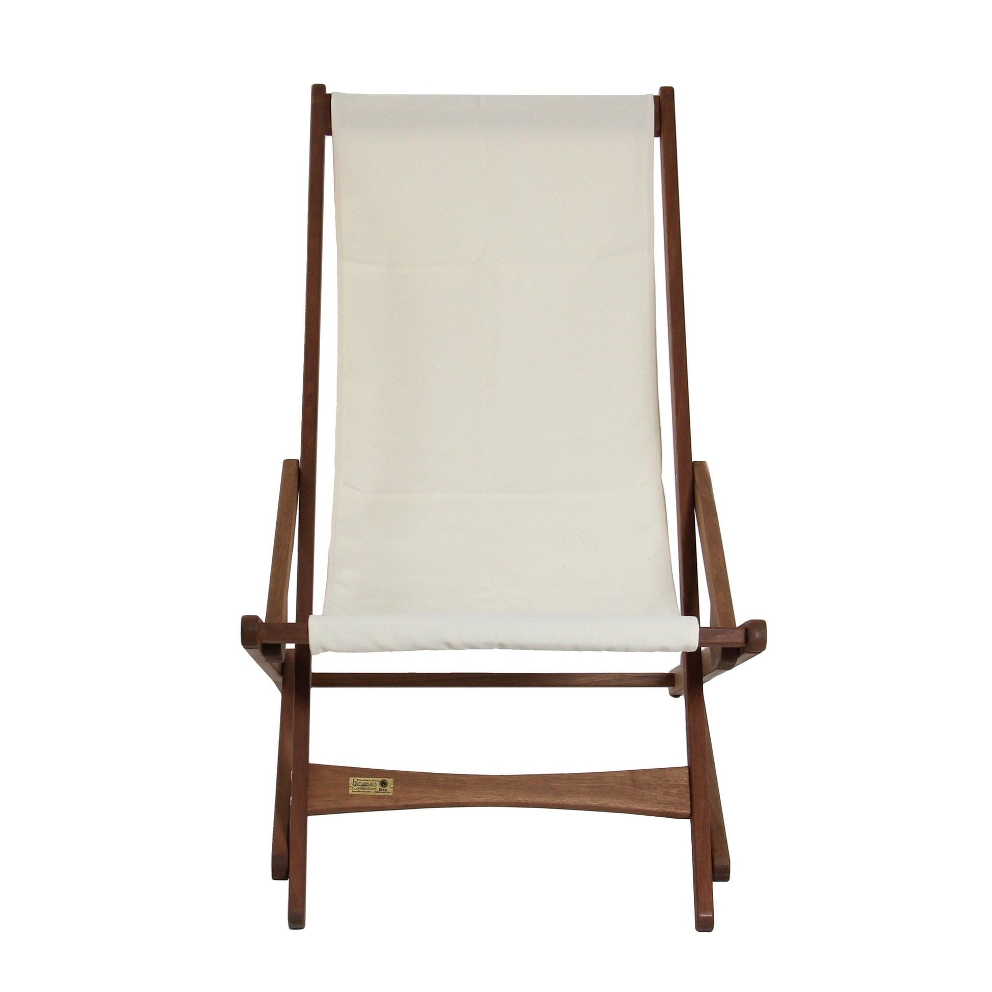 - Crafted from renewable hardwood Keruing wood, the sling beach chair has been dipped in oil for an extra protective finish and covered with an attractive heavy-weight polyester canvas.