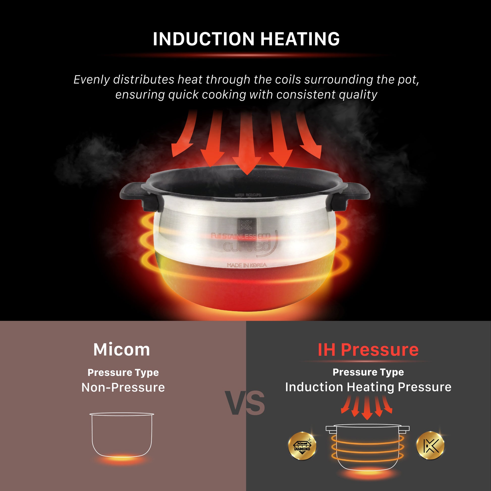 - INDUCTION HEATING: Compared to traditional bottom-plate heating, induction technology completely surrounds the inner pot making the cooking process quicker, more efficient and delivers more delicious results