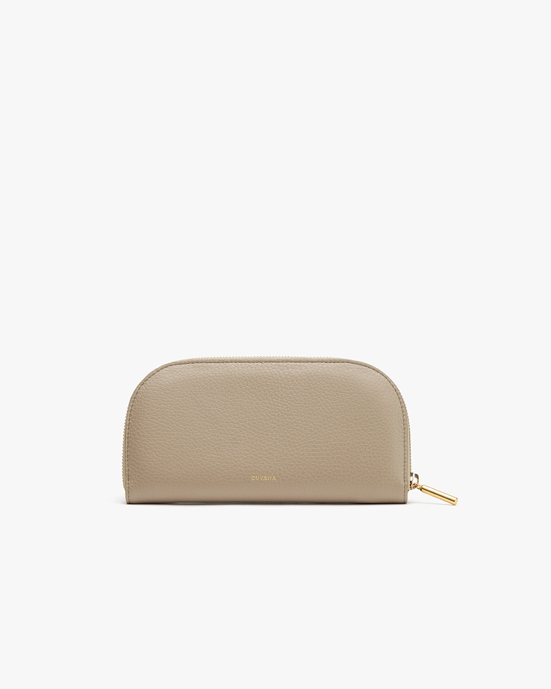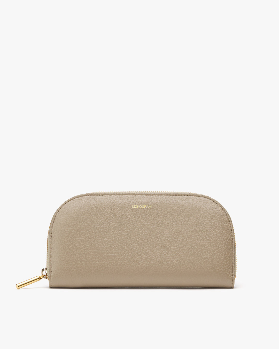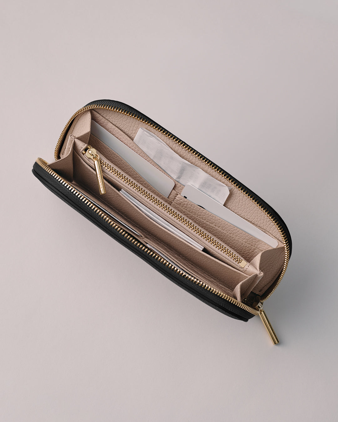 A feminine twist on the classic continental wallet, crafted from refined Italian pebbled leather with a center zip pocket, eight card slots, and two bill pockets. Its wrap-around silhouette can accommodate larger items like a passport and more during travel.