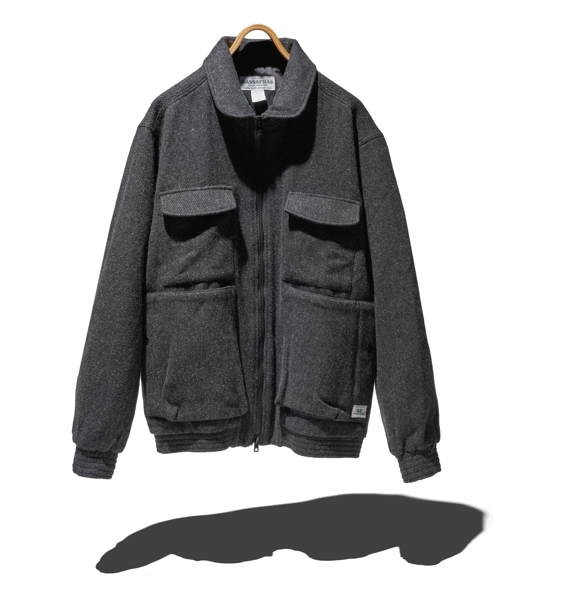 The outer fabric is an original Herringbone Blanket. The fabric is based on old workwear border blankets and has a traditional pattern. The lining is made of antistatic quilting. The jacket is made with reference to various flight jackets. The jacket is characterised by Tool pockets on the front and back and has a two-tiered collar. All products are delivered unwashed.