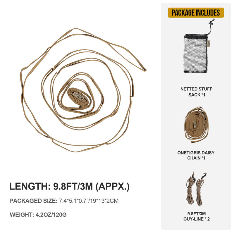 - Approximately 8ft/3m long for use with your tent, tarp or other outdoor shelters