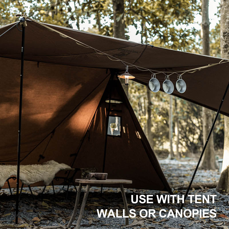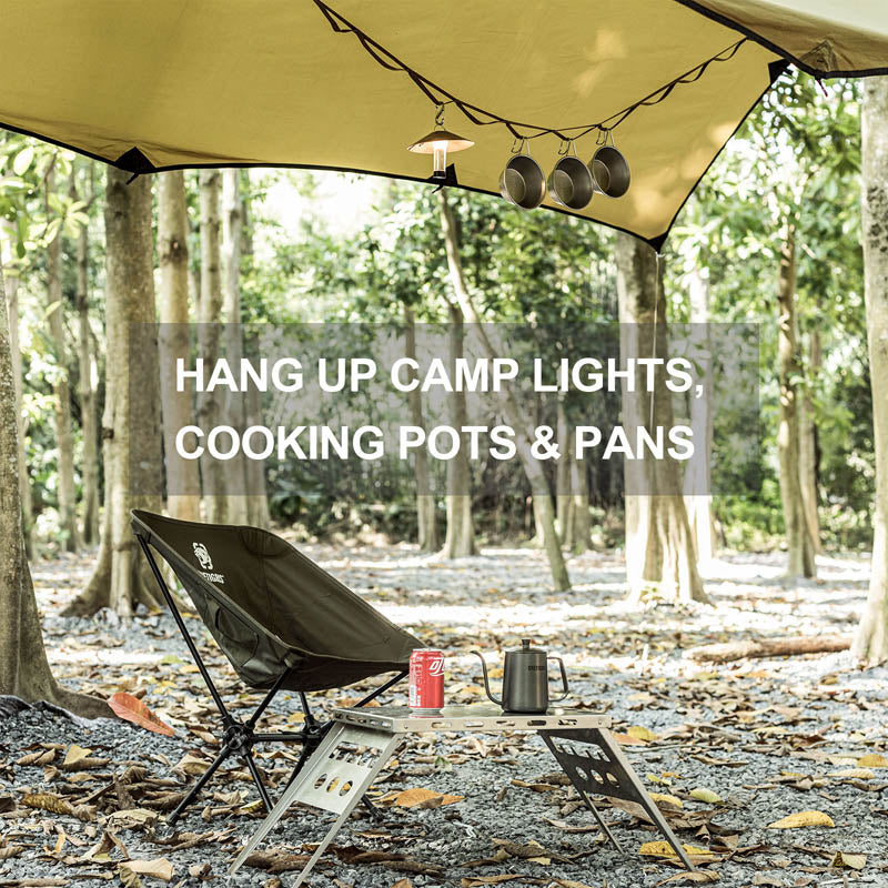 - Useful for hanging camp lights, lanterns, cooking pots and pans, mugs and other campsite items to keep things clean and away from the ground