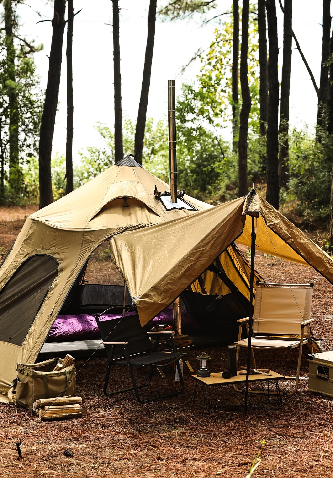 - 【Double Door Design】There are two large doors on the outer tent of the Bell-Shaped hot tent, which has a better visual effect and is convenient to enter and exit the tent.