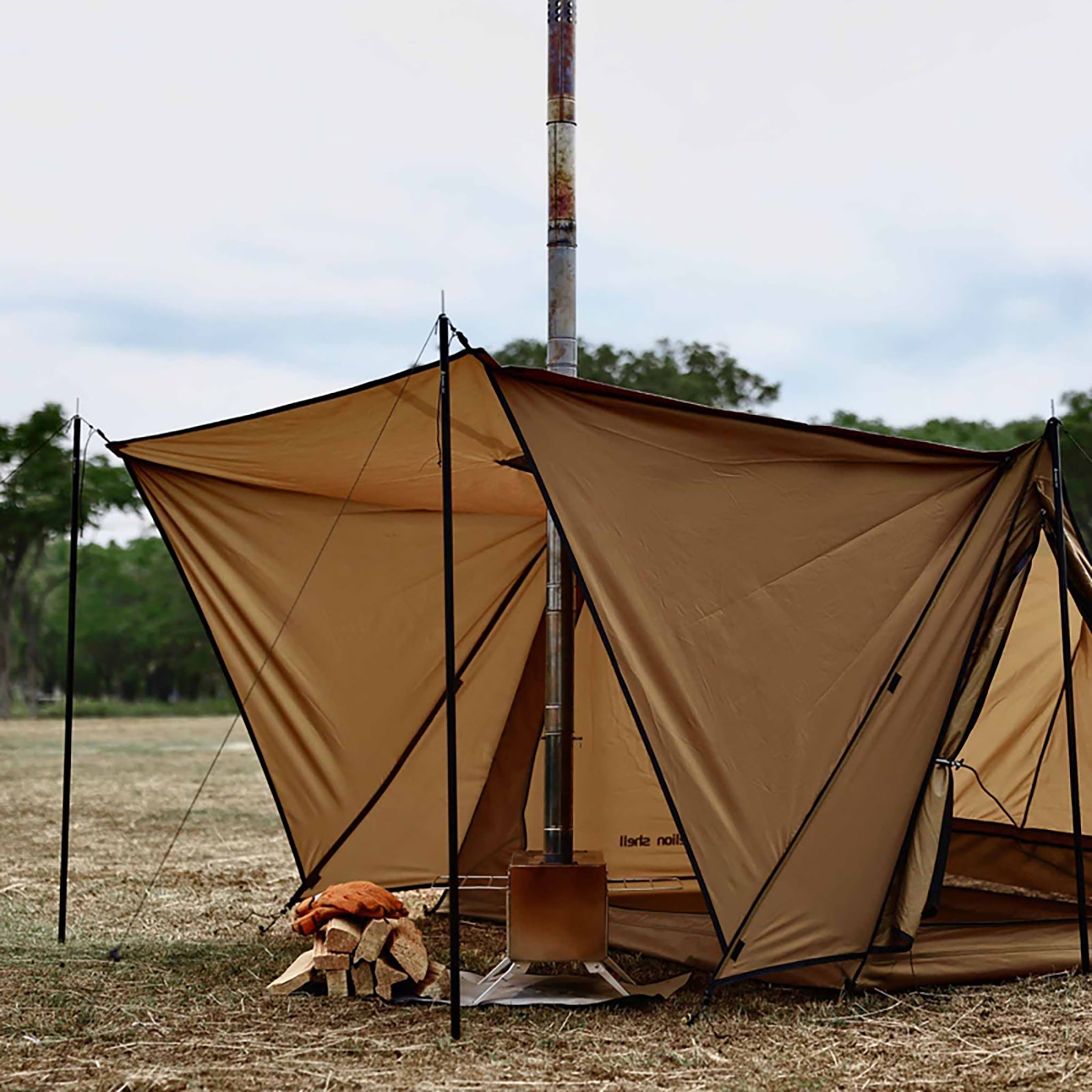 【Easy and Quick Setup】The hot tent for camping is easy to set up and can be completed in just 10 minutes. The entire hot tent with floor requires up to 4 poles, with two of them serving as support for a sunshade. In case you forget enough poles, hiking poles or branches can serve as substitutes for setup.