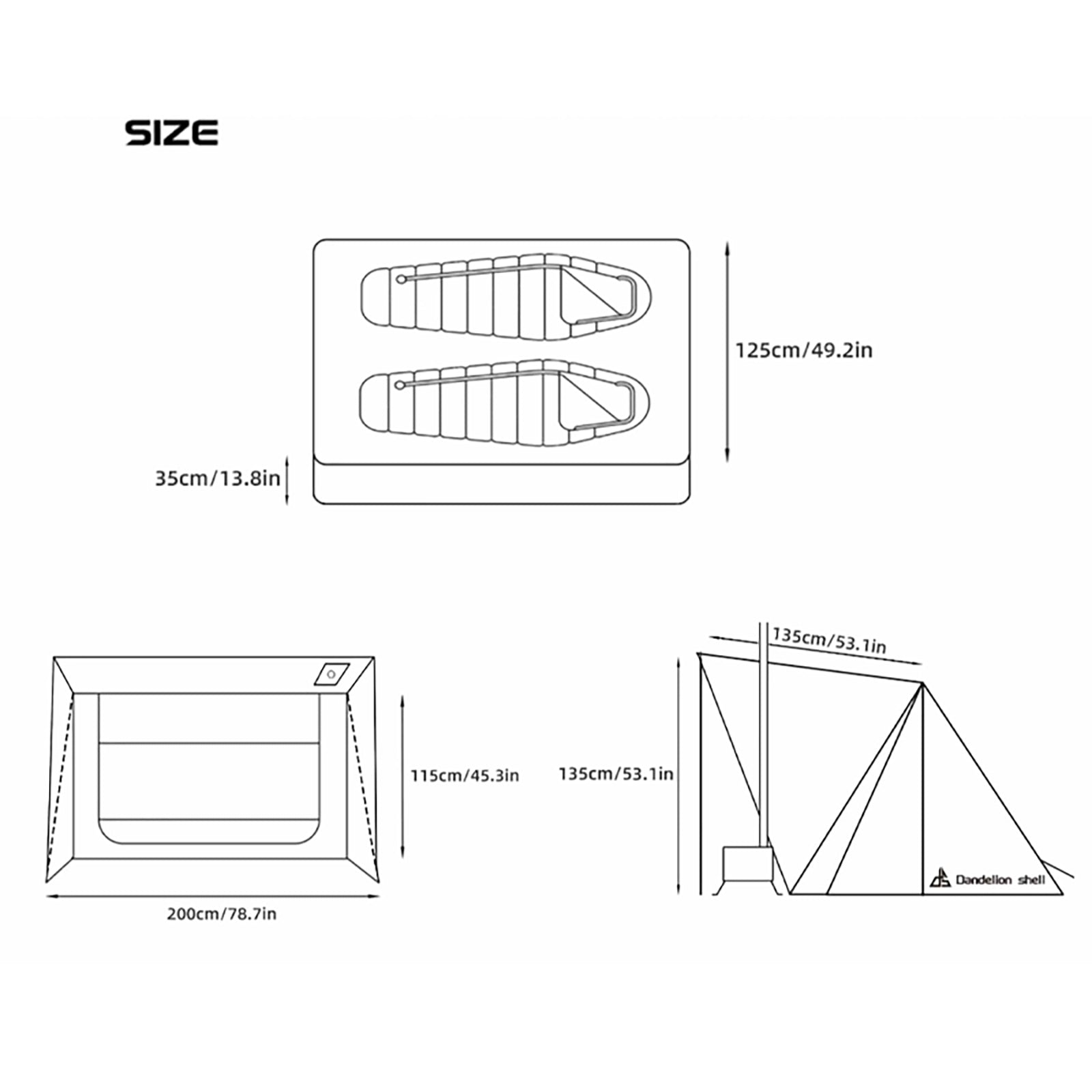 【Spacious with Flooring】 - This winter tent with Stove Jack measures 82 inches in length, 55 inches in width, and 47 inches in height, comfortably accommodating 1-2 persons. The two person tent with a built-in floor allows you, your family, or friends to rest without worrying about damp ground on rainy days. Say goodbye to the hassle of setting up additional bedding.