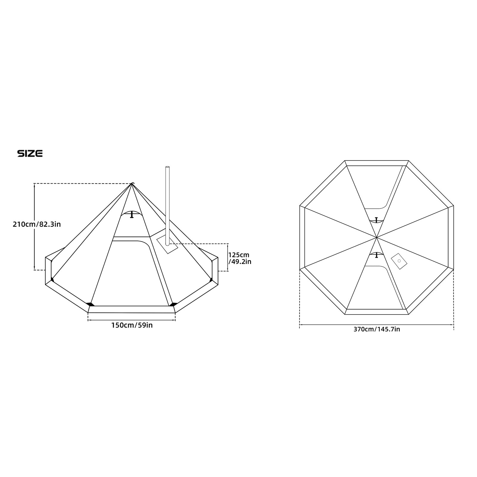 【Spacious Interior】Our hot tent comfortably accommodates 3-4 people with a generous height of 78 inches and an extended diameter of 145 inches. Even when housing four individuals with a stove, the tent remains remarkably roomy. Perfect for family trips or adventures with a group of close friends, this winter tent with Stove Jack ensures an enjoyable travel experience.