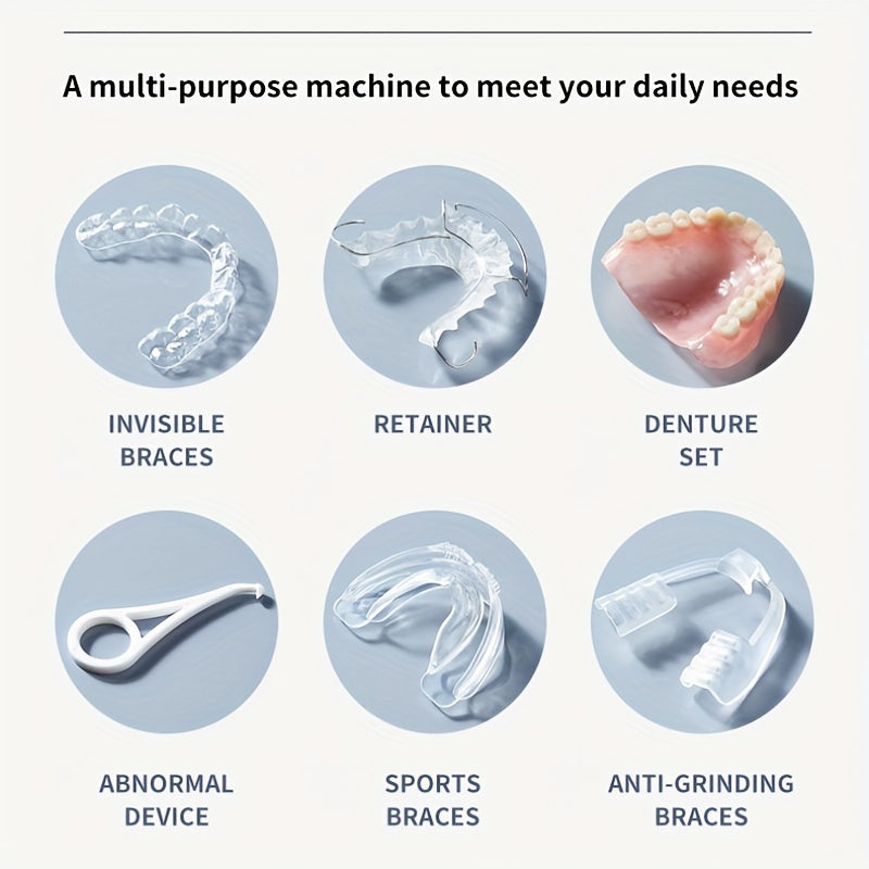 This versatile cleaning machine is designed to meet a variety of needs, making it suitable for both home and travel use. It effectively cleans dentures, braces, night mouth guards, and jewelry, ensuring they remain spotless and sanitized.
