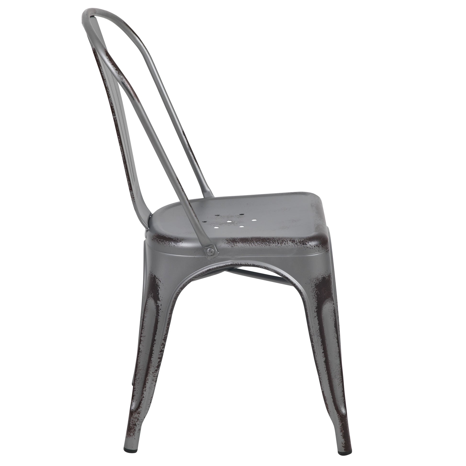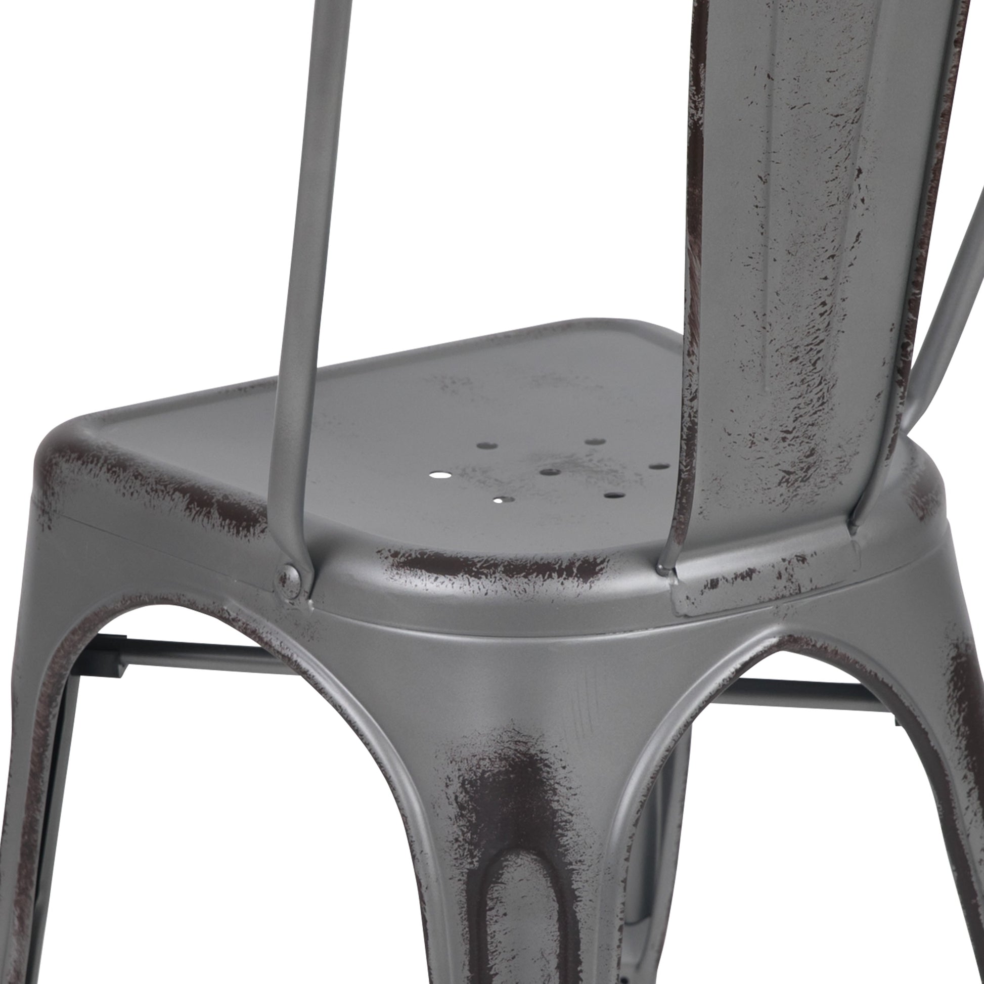 Commercial Grade Distressed Metal Indoor-Outdoor Stackable Chair