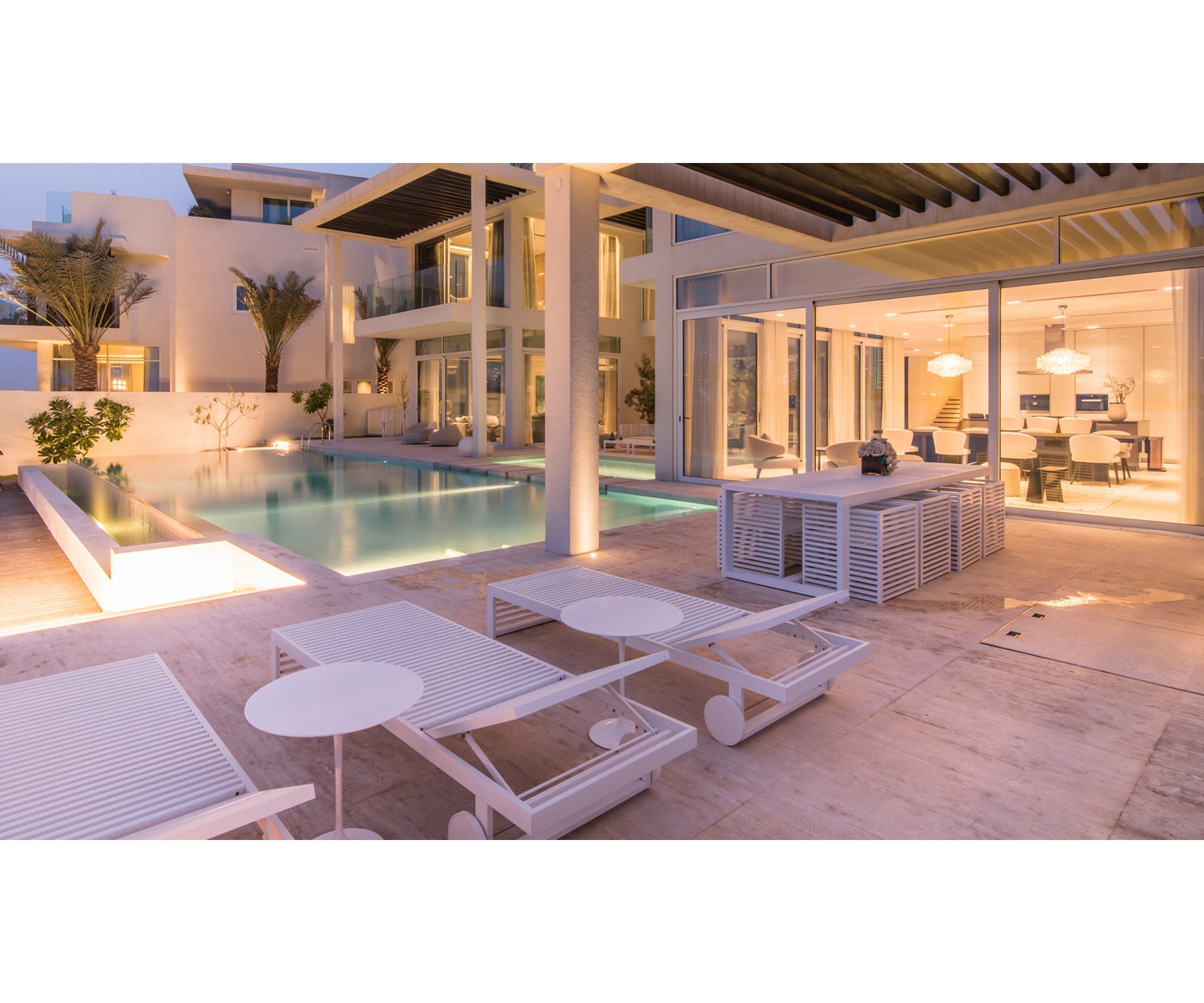 Simple, elegant, yet comfortable. The cushions and seat pads are made of polyurethane foam rubber covered with water-repellent fabric, while the removable covers, are available in a choice of colours and finishes.
