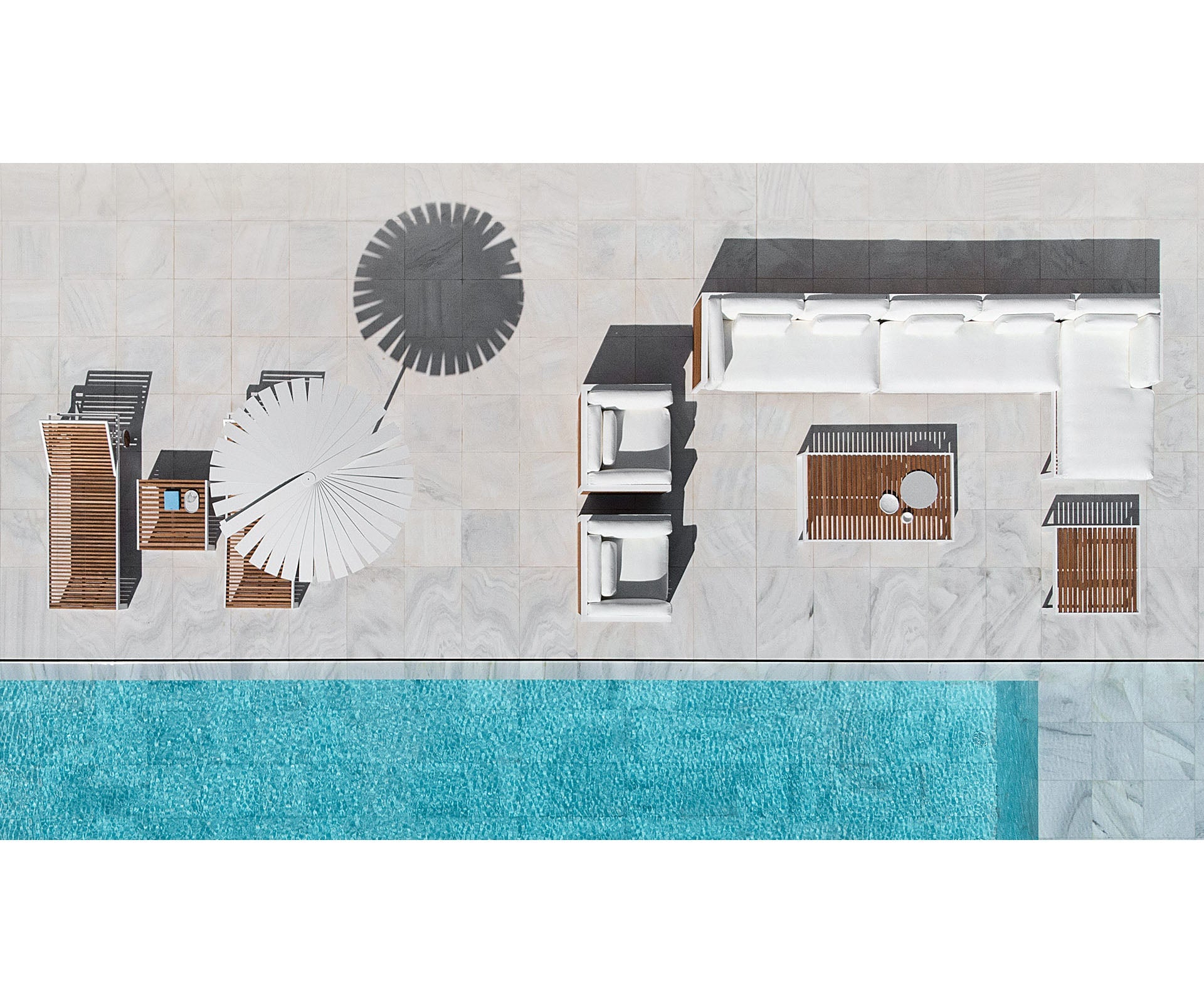 The DNA TEAK chaise lounge is an outdoor lounger made of aluminium profiles and teak wood slats, which are inserted into the profile itself so that they are perfectly integrated into the frame. The rigid structure is made of silver anodized aluminium or powder-coated aluminium, painted with high-quality and super durable powdered paint available in our range of colours: white, agate gray, cement gray, bottle green, black, anthracite, bronze, etc. The upholstery of the DNA TEAK chaise lounge is removable and it is available in different colours and textures of Kvadrat or Sunbrella fabrics, among others.