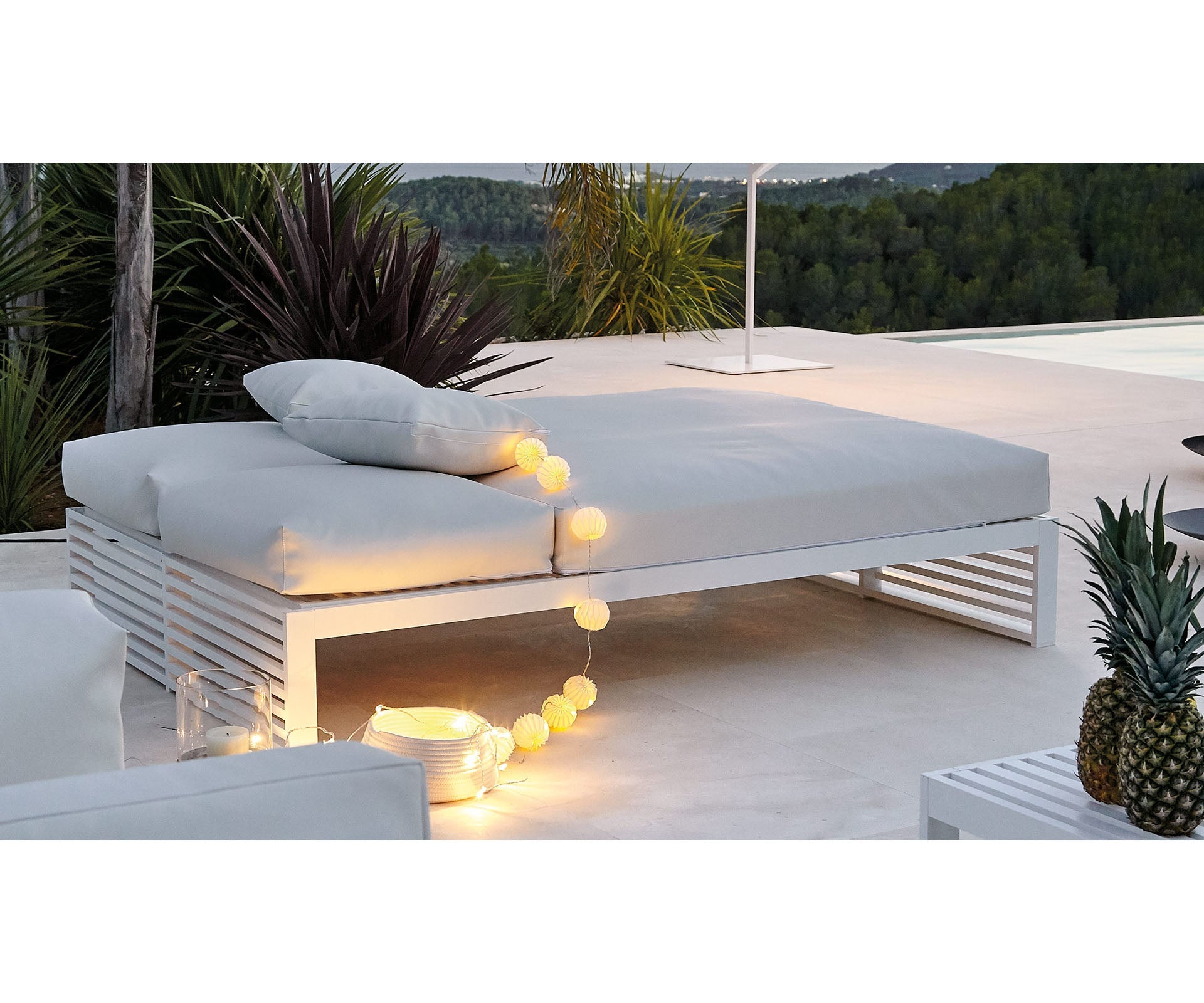 The new DNA twin double chill bed is made with powder-coated aluminium profiles with highly resistant outdoor paint, now also available in a wood-effect aluminium finish. The functionality of aluminium is thus joined by the warmth of wood, creating comfortable and welcoming environments.