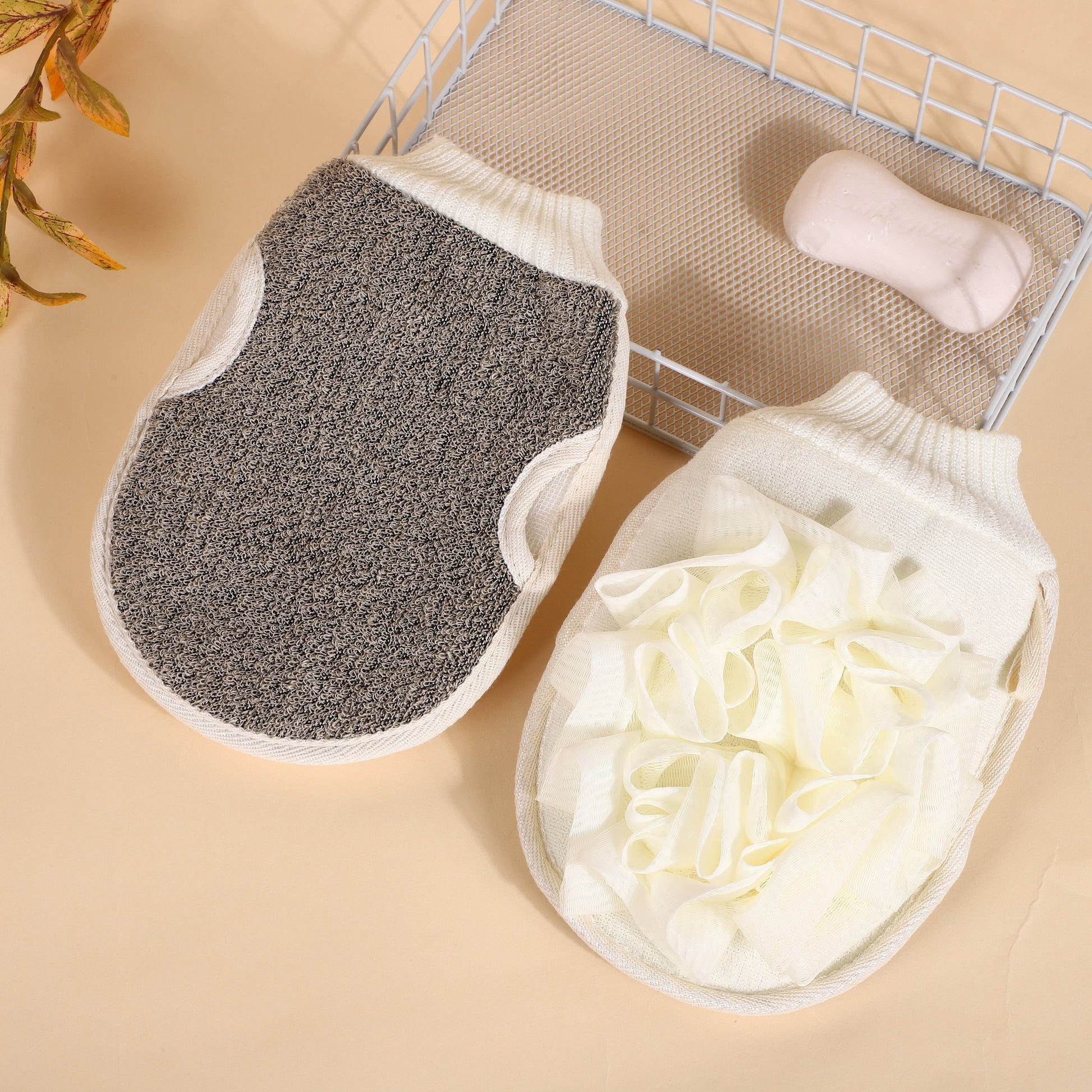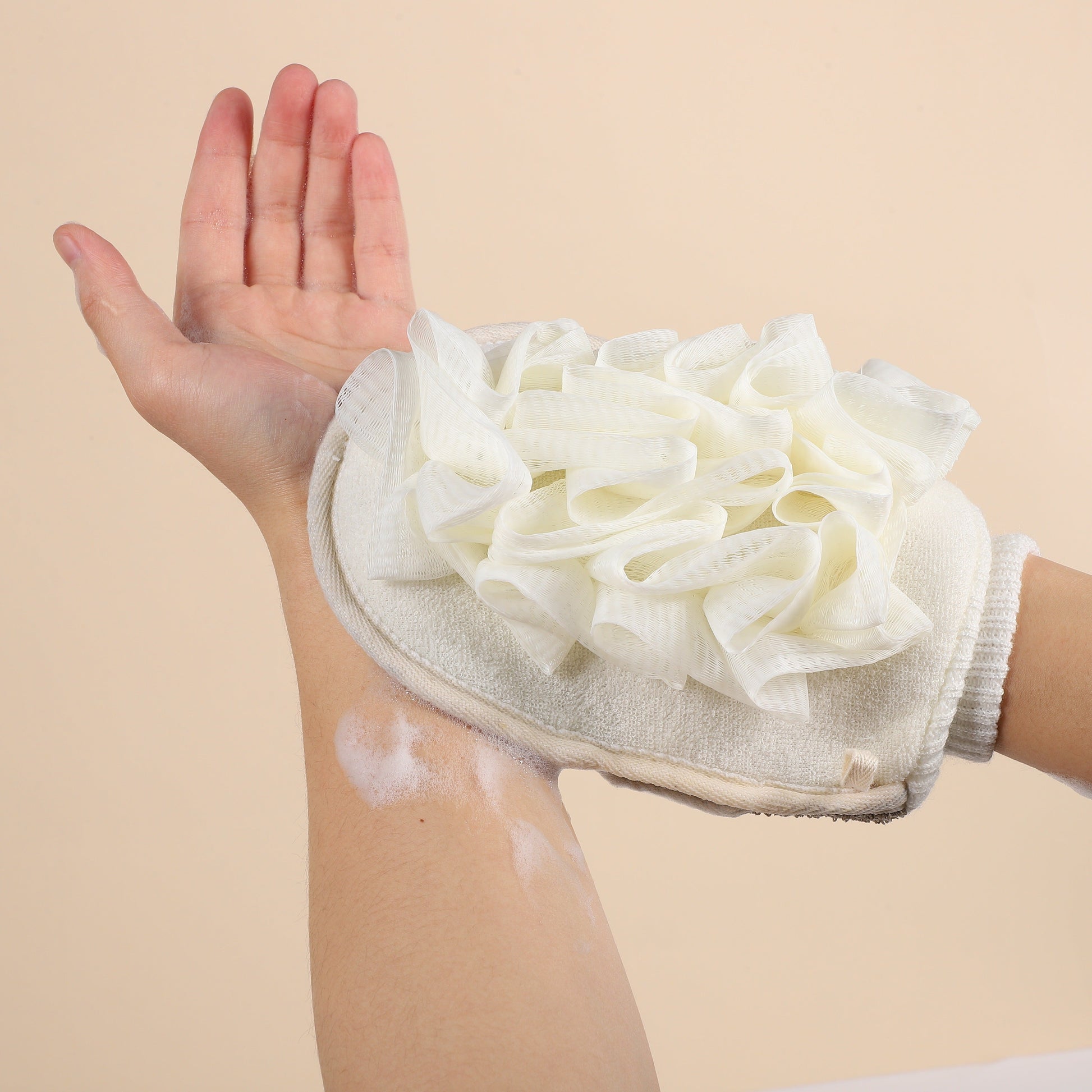 Dual-Sided Design: The mitt features a dual-sided surface with a soft loofah on one side for gentle exfoliation and an ultra-smooth fabric on the other for polishing and refreshing your skin.