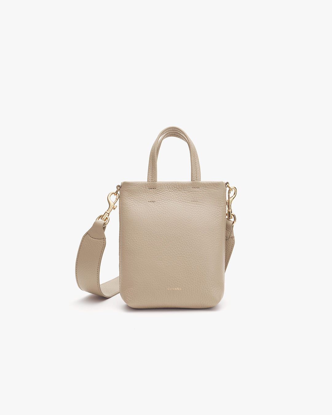 A mini version of our bestselling tote, crafted from soft and lightweight Italian pebbled leather with an accompanying wide strap for styling versatility.