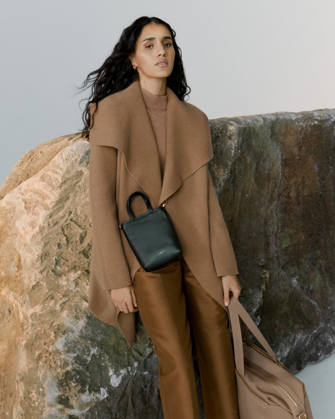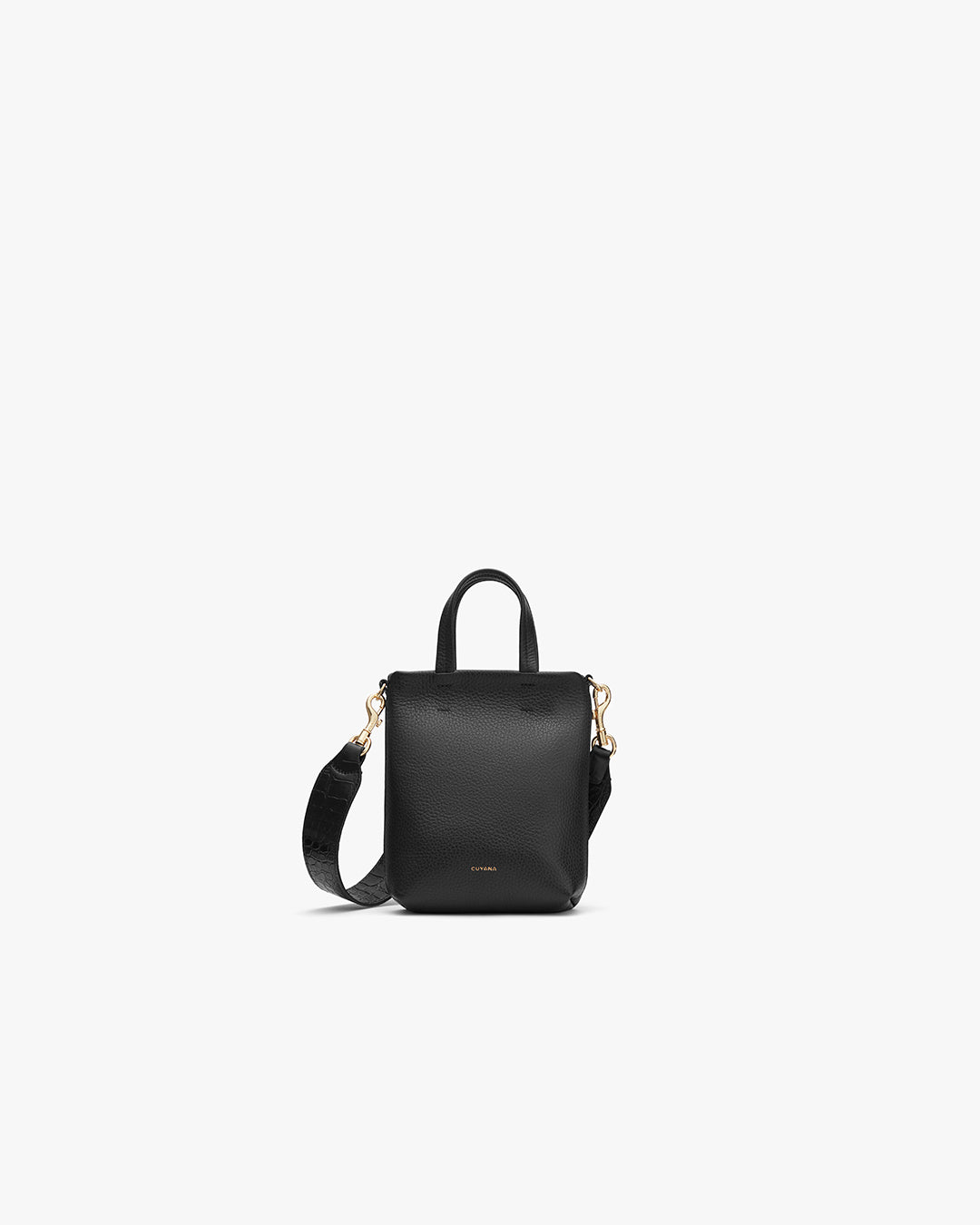 A mini version of our bestselling tote, crafted from soft and lightweight Italian pebbled leather with an accompanying croc-embossed wide strap for styling versatility.