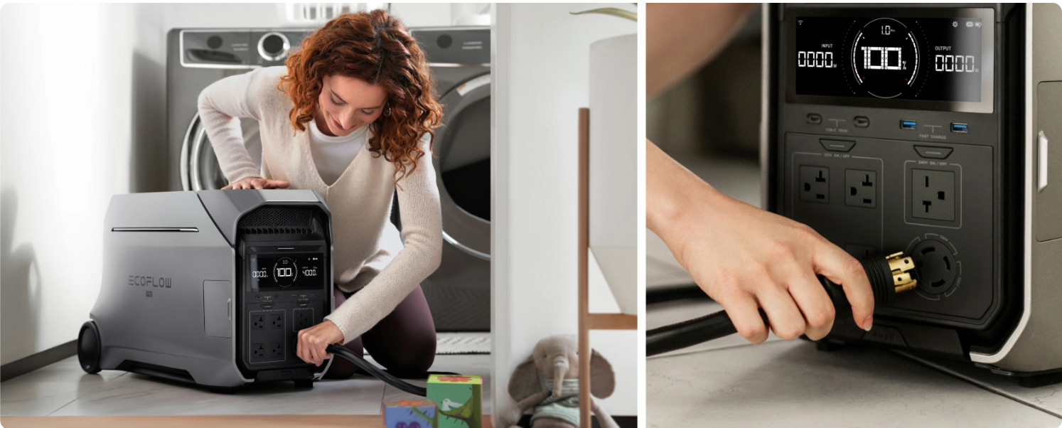 A single source to power almost all of your essential home appliances. Power high-demand appliances—from 3 ton * central AC to 1 HP water pump—with robust 4000W and dual 120V/240V capabilities. Keep your kitchen buzzing and essential systems like garage doors running, all powered simultaneously and reliably by EcoFlow.