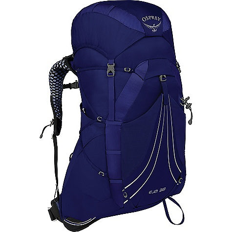 The Womens Eja 38 Rucksack from Osprey is a lightweight, well-ventilated backpack designed specifically for women that is ideal for multi-day trips. Thanks to its clever, no-compromises design and with the removable lid and integrated FlapJacket, you can travel lighter and faster. With its advanced AirSpeed back system and ExoForm harness and hip belt, you can dial in the fit for a more comfortable, ventilated load-carrying experience so your back can breathe even while you push on harder with whatever adventure you are on.