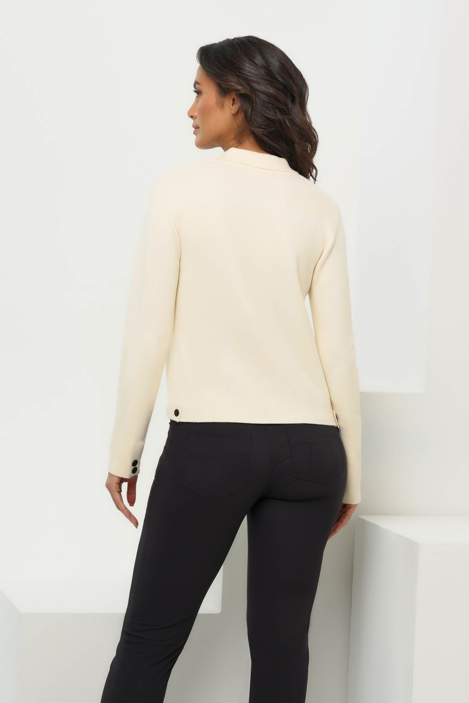 We've infused a feminine twist into the classic Trucker jacket silhouette. Made from a luxurious cashmere blend, Elaine embodies a blend of strength and softness that mirrors the uniqueness of both our brand and customers. Whether layered over your go-to top or worn as a trendy shacket, Elaine is ideal for staying cozy during the seasonal transition.